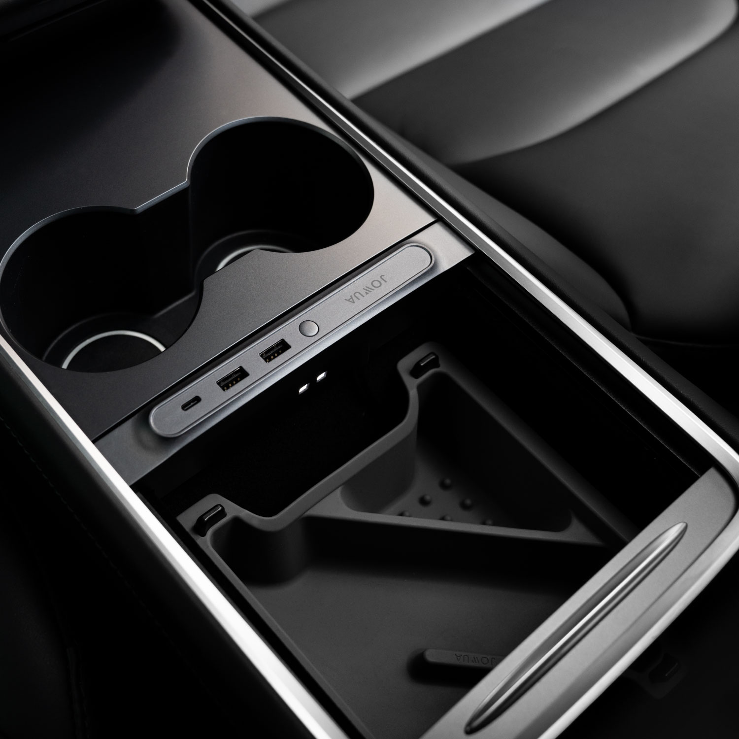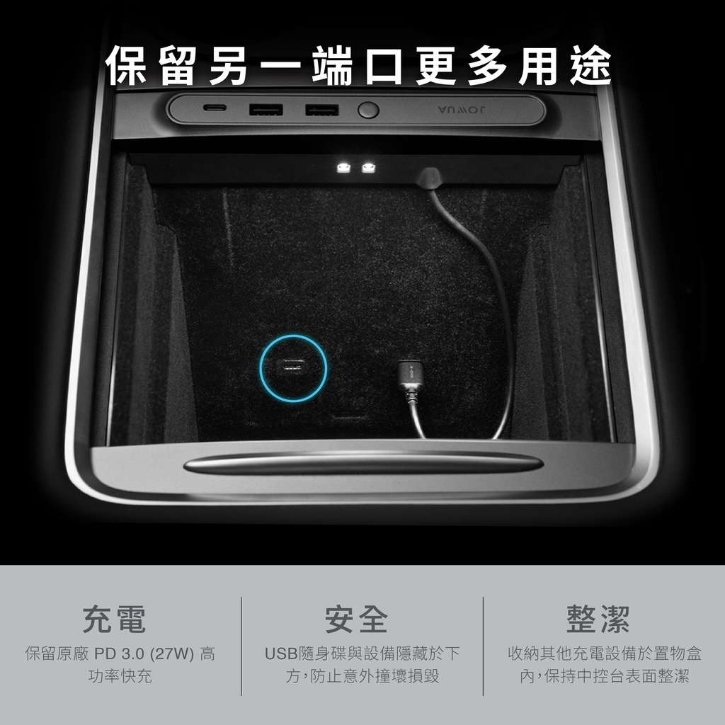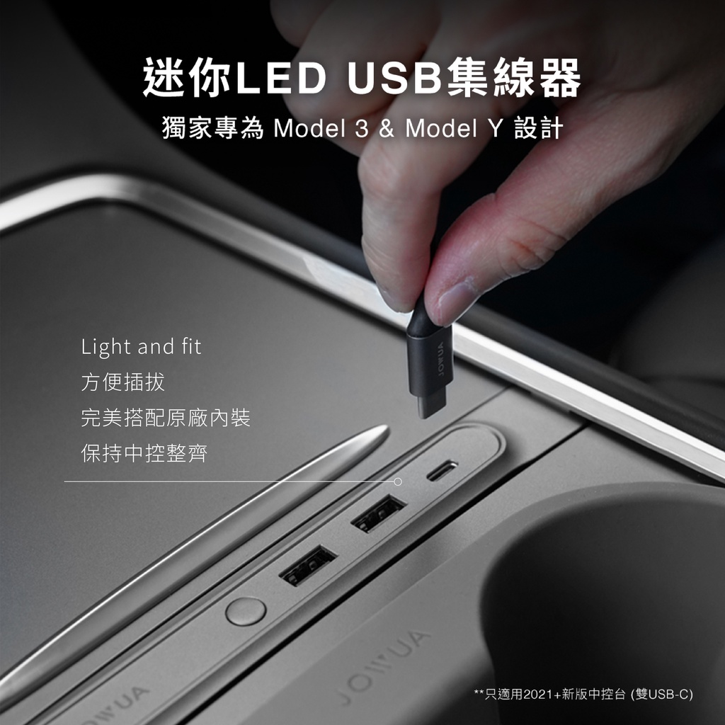 專為 Tesla Model 3 中控雙 USB-C 端口設計(新版中控),方便你在黑暗中尋找物品。