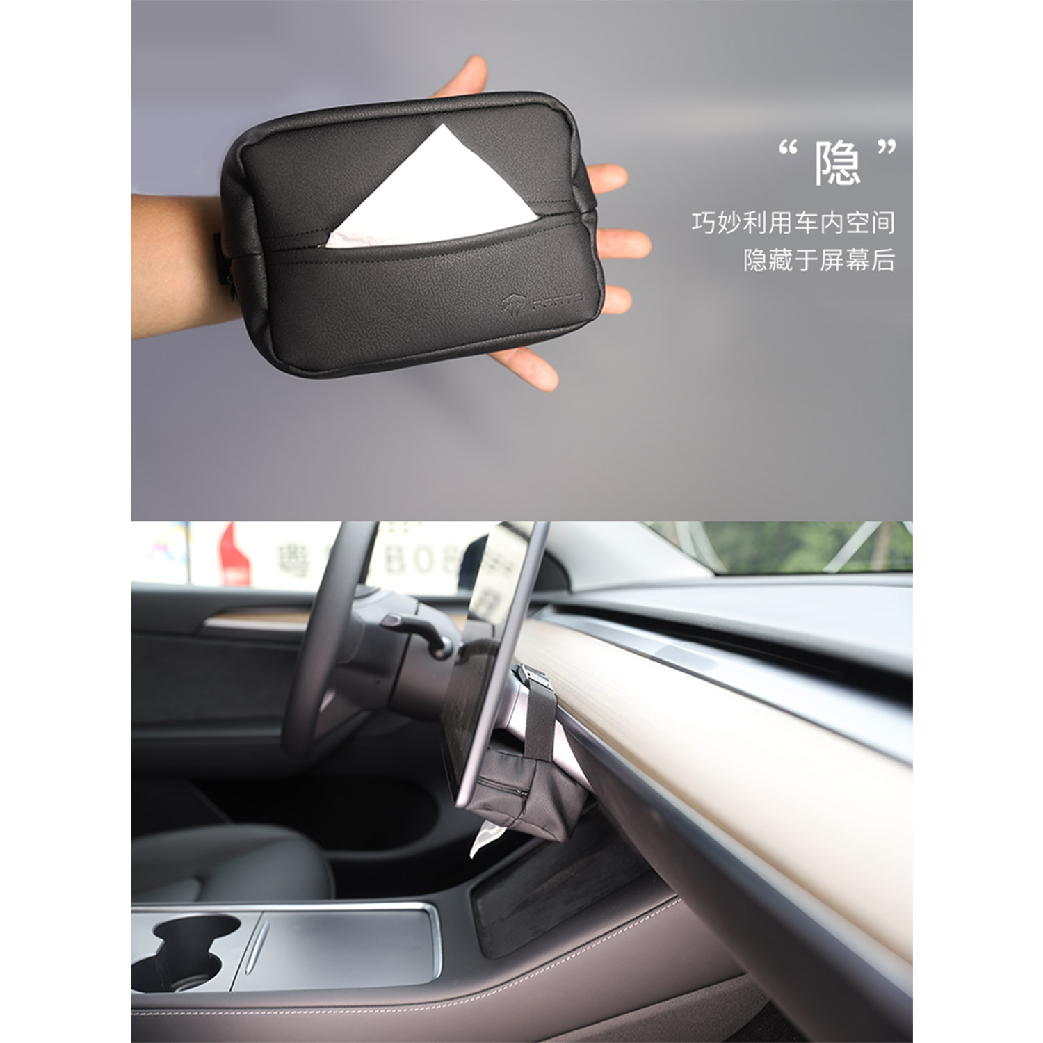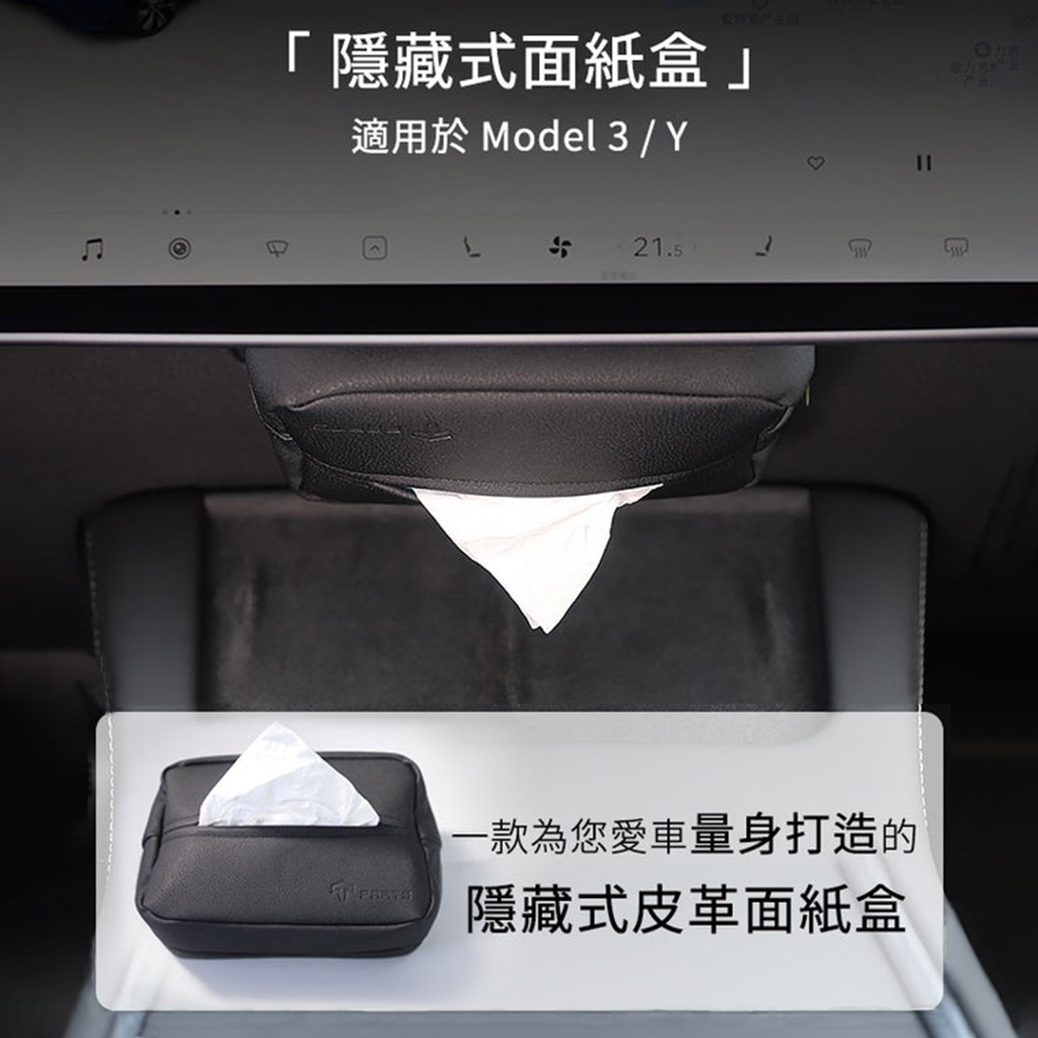 適用車款: Tesla Model 3, Model Y - 隱藏式面紙盒 - 最適合掛在螢幕下方,抽取方便 - 購買贈送小型衛生紙乙包