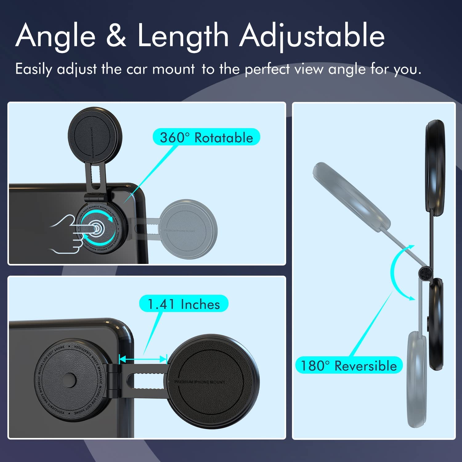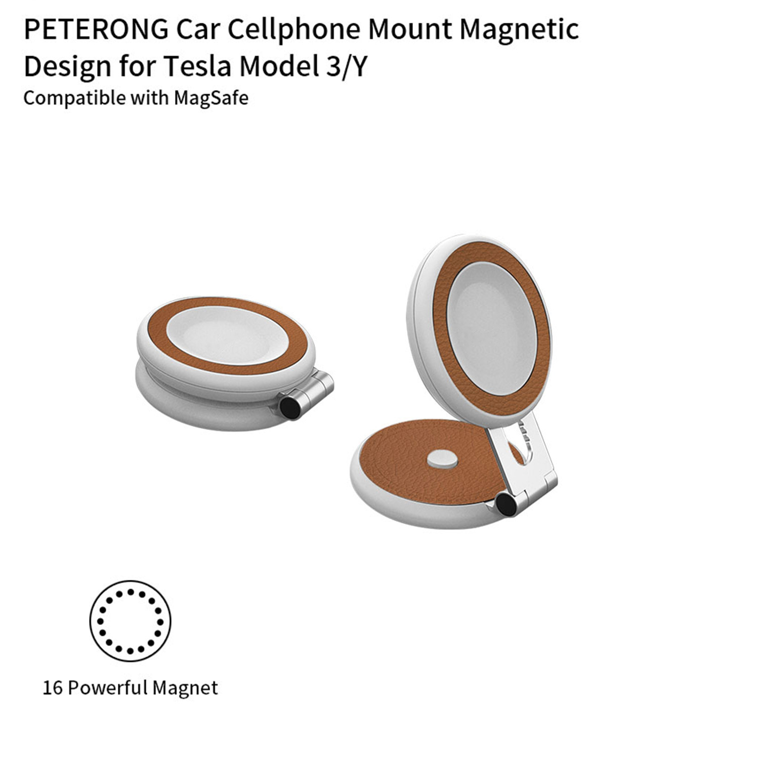 適用車款: Tesla Model 3, Model Y, Model S, Model X 兼容於 iPhone MagSafe 系列及 MagSafe 保護殼 可以適合任何手機支架 隱藏式設計,可折疊收納,藏於 Model 3/Y 螢幕後方 360度旅轉支架關節處有 500g 的防震能力,讓手機能在車輛行駛間保持穩定 磁吸功能強,手機不易脫落 規格 安裝位置:中控螢幕後方 此包裝包含: 1x 磁吸板 1x 支架 1x 安裝定位貼紙