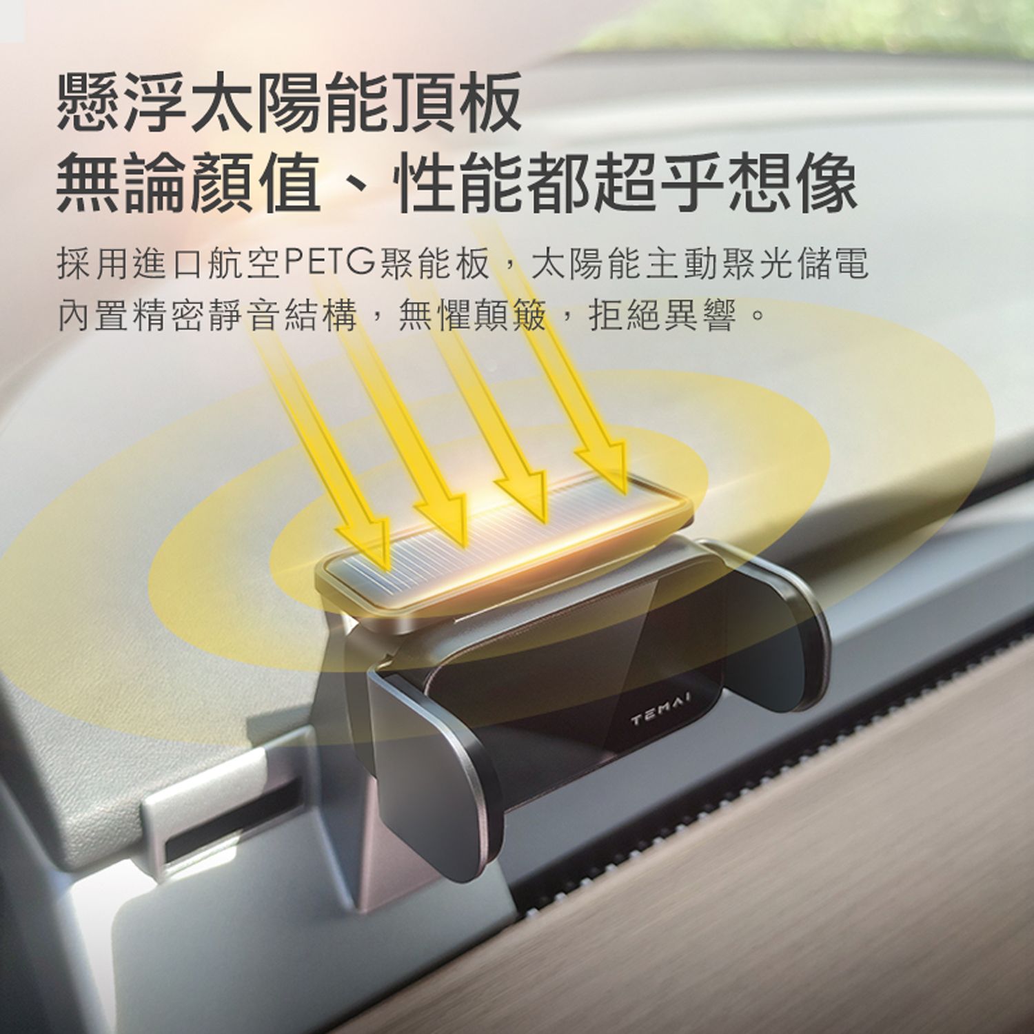Model 3/Y 懸浮太陽能手機夾架【右駕/活動式款】|TEMAI