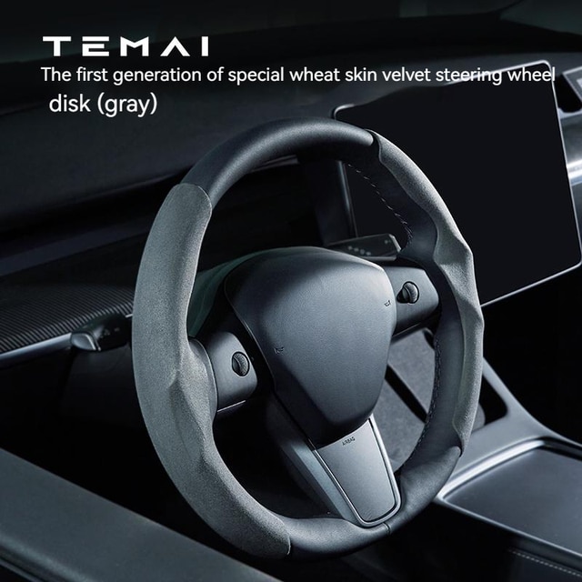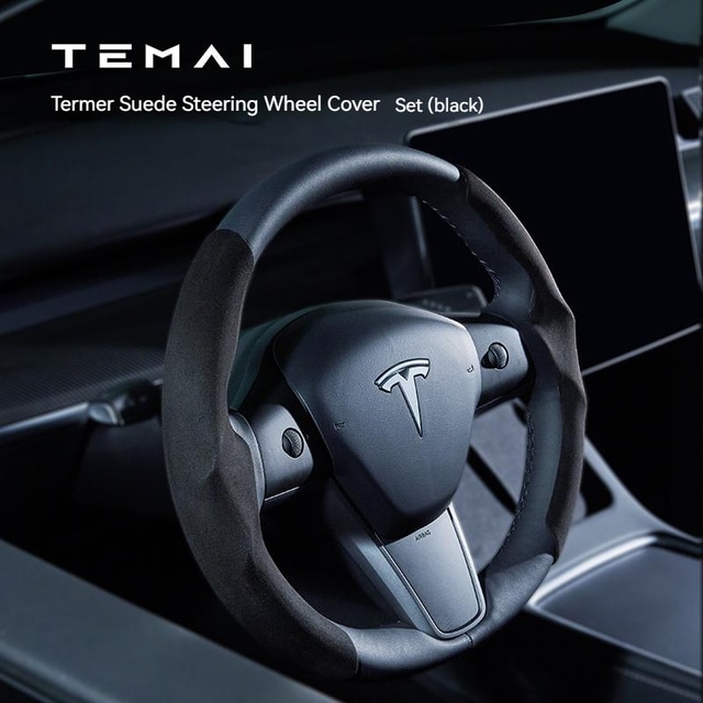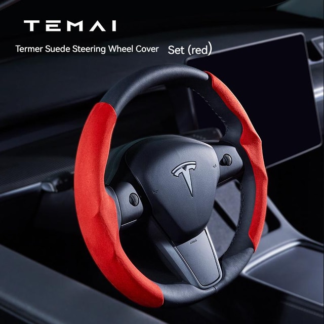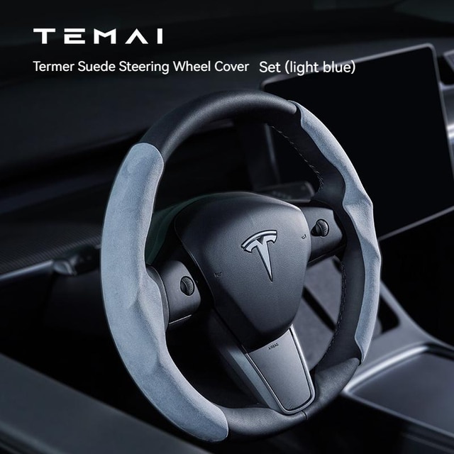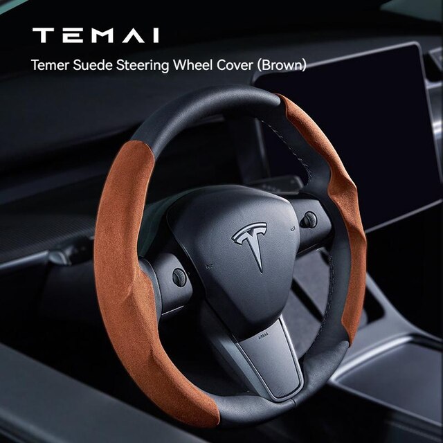 Model 3/Y 麂皮絨方向盤軚盤裝飾保護套 (淡藍色/紅色/棕色/灰色/黑色)|TEMAI