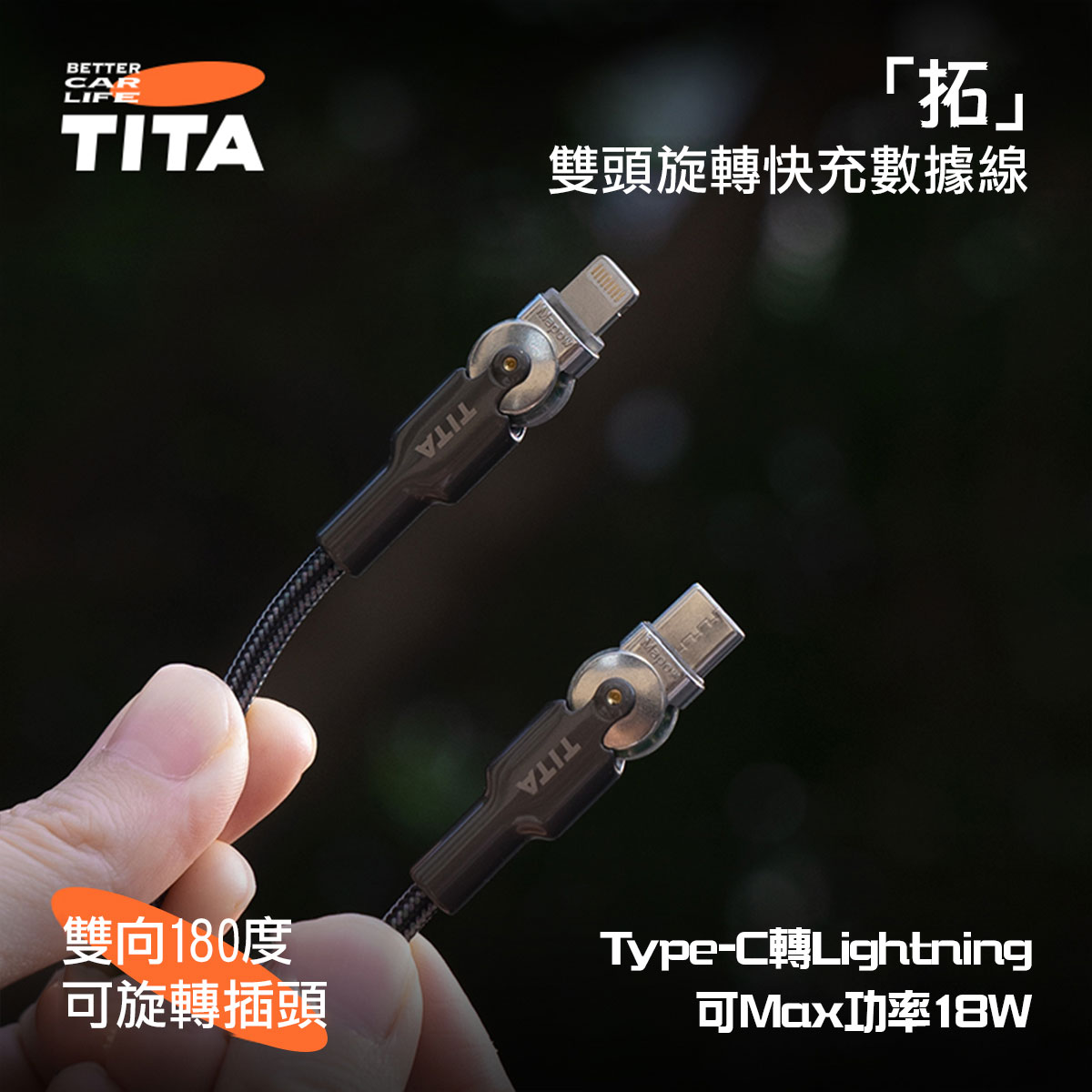 Model 3/Y「拓」手機充電數據線 | TITA .尼龍編織搭配鋅合金,抗拉伸防纏綫,極其耐用 .雙向180度可旋轉插頭,滿足全任何角度 .雙頭環指示燈,精緻有質感 產品: Type-C 轉 Type-C / Type-C 轉 Lightning 功率: iPhone (C-L) 最高功率 18W; C-C 最高功率 60 W 材質:尼龍配鋅合金 適合: Model 3 / Y 長度: 1m