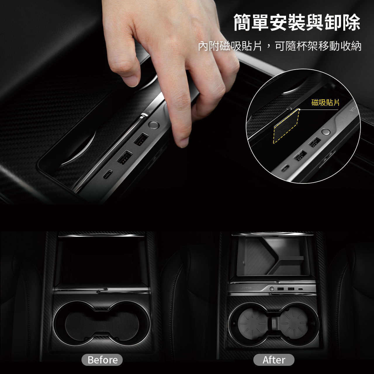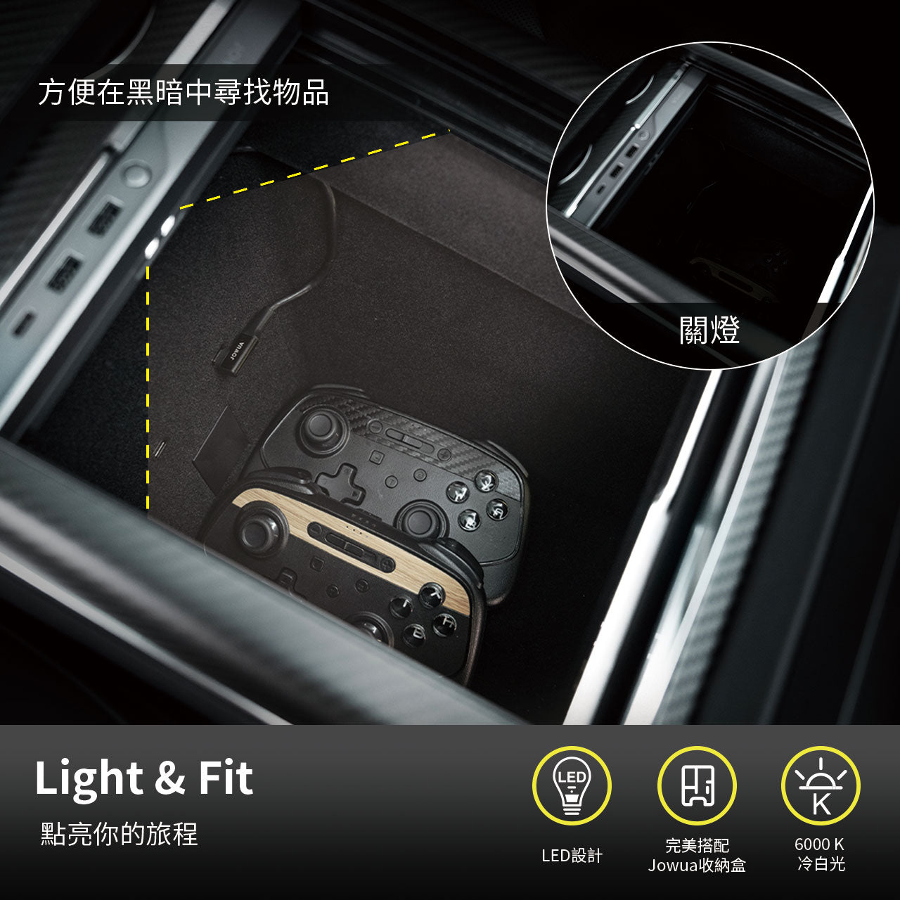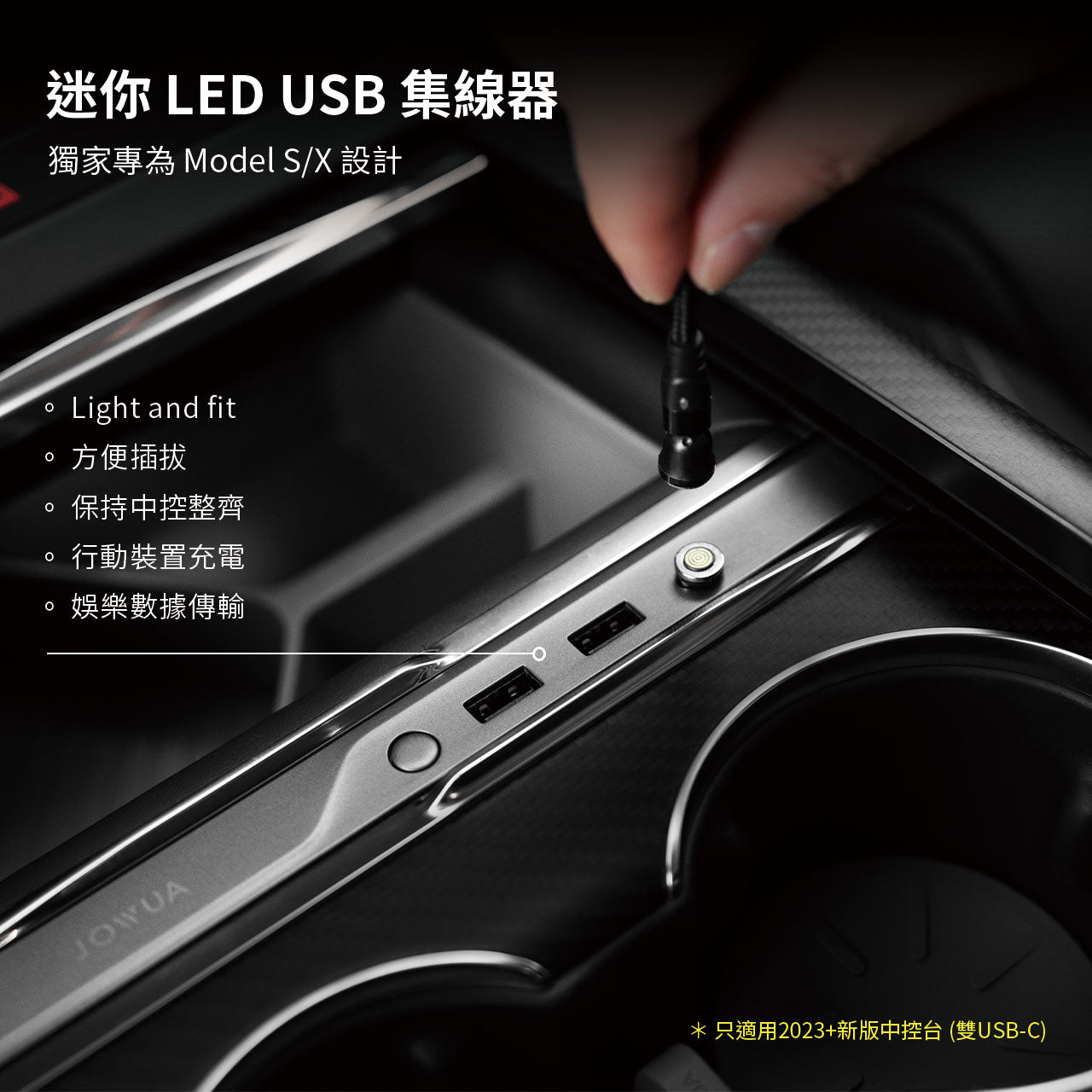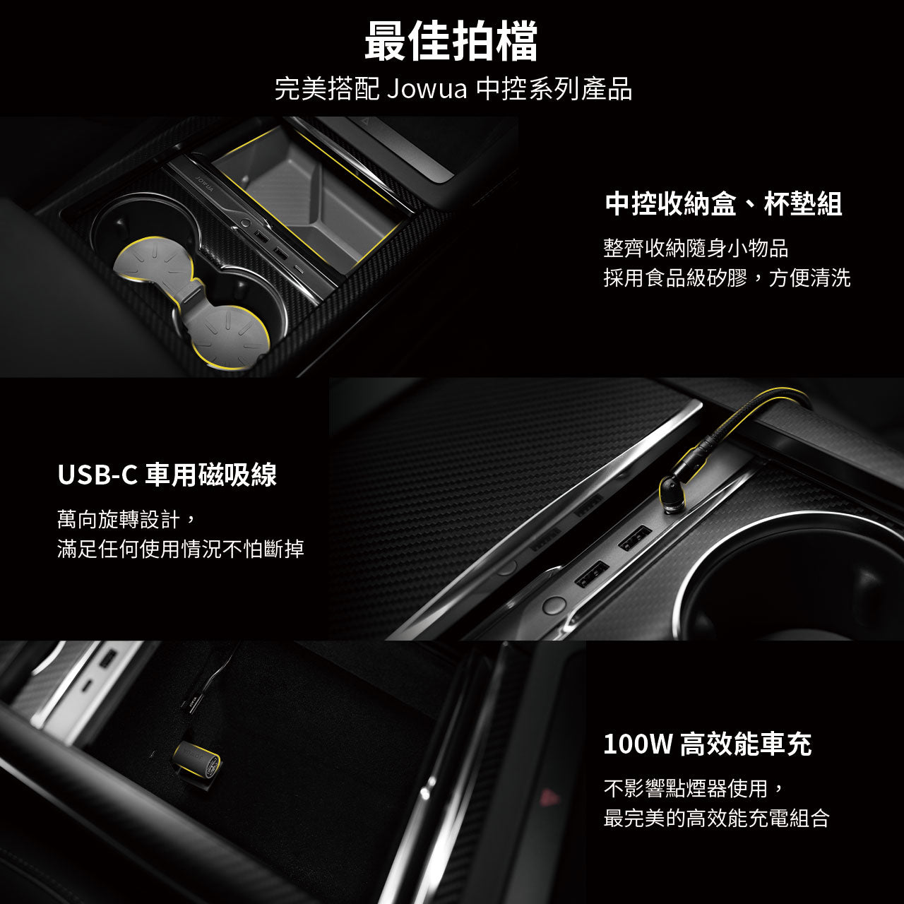 搭配 Jowua 中控收納盒+杯墊組與Jowua磁吸線,收納盒與集線器完美結合,絕對是 Model S/X (2023+) 最佳充電與收納的解決方案。