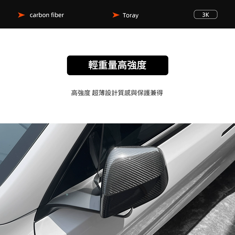 【3K 碳纖維】Tesla Model Y 側鏡罩由真正的碳纖維製成,與傳統的 abs 材料完全不同,不會產生氣泡,碳纖維布圖案不會變形和扭曲,更有效的防刮,使用壽命長,低調奢華。