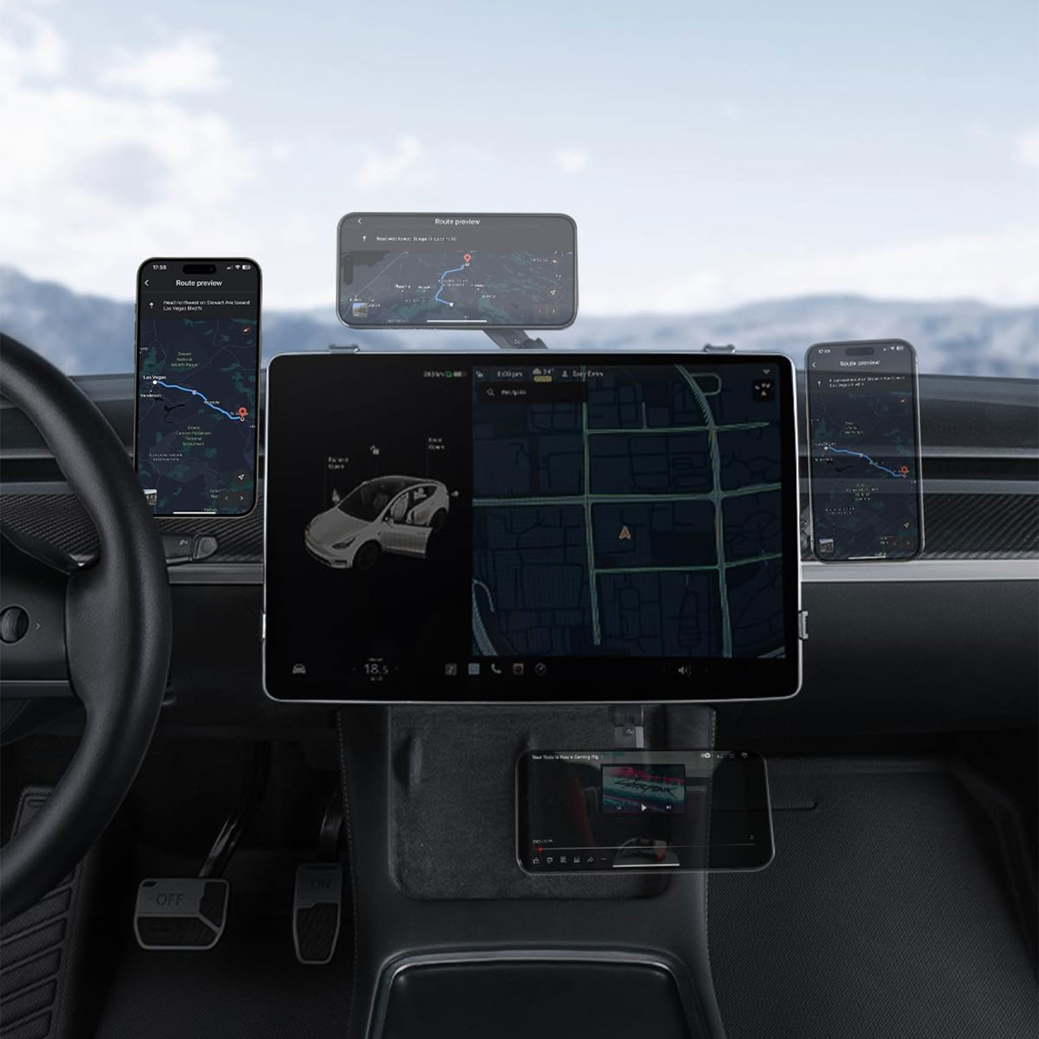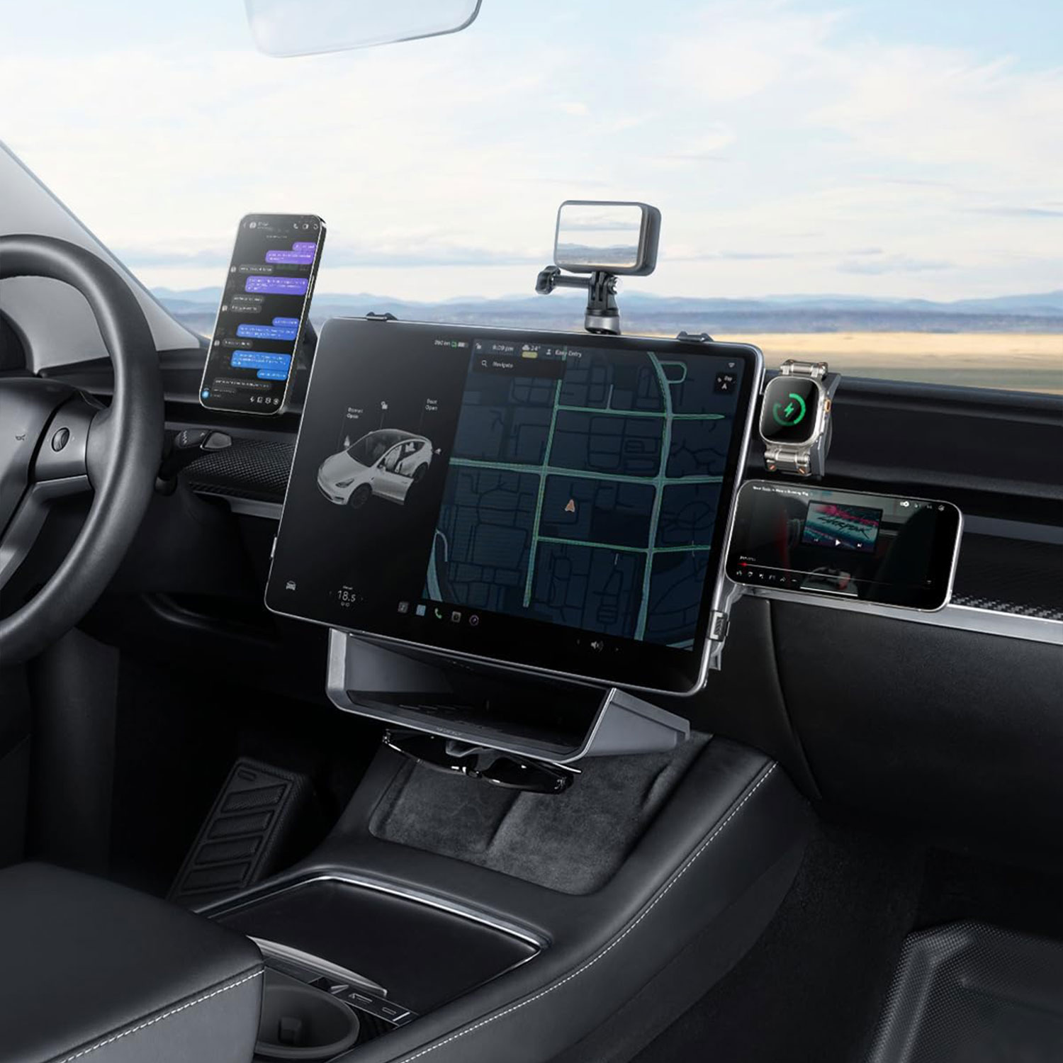 通用 (適用於17mm球頭) 適用於:Tesla Model 3 & Y (2019-) 及Model 3 Highland 可使用 HALOBLK HaloStation 為駕駛者設計,提供更多螢幕上實用使用功能。提供充足的收納空間,同時解放駕駛者的雙手,確保安全有序的駕駛體驗,在螢幕上每個位置靈活地實現手機架、Action Cam相機支架、智能手錶支架和儲物收納。