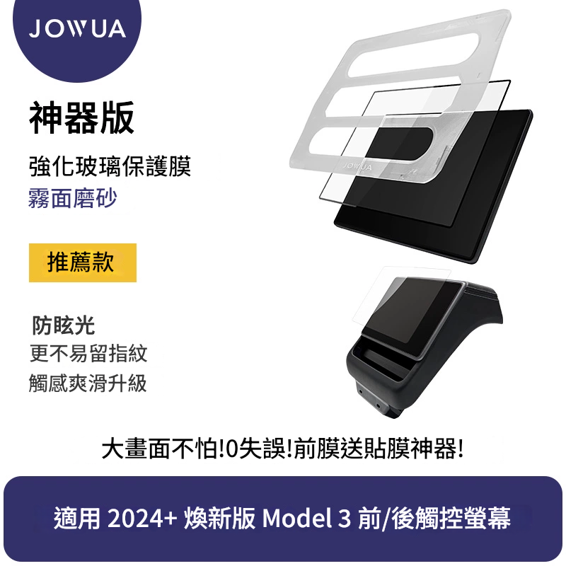 Model 3(24+) / Model Y (25+) 防眩抗指紋雙螢幕玻璃保護貼 (高清/磨砂) | Jowua