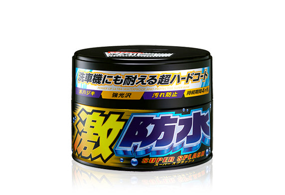 Soft99 激防水 固蠟 採用了新開發的持久防水樹脂「耐水FSI樹脂」,在車身表面形成堅固屏障,有效防止雨水,污水,酸性雨等污染及傷害車漆,同時發揮了驚異的超級驅水‧防水機能。經實驗證明,蠟膜耐久效果可以達到3個月以上之久,並可承受洗車(一般手工洗車)10次以上且不會失去功效。本品為不含研磨劑配方,保障防止錯誤操作等造成車身表面傷痕。罐底更加使用了防劃痕樹脂橡圈的貼心設計。 *本品功效根據本公司嚴格實驗所得出。因使用狀況‧天氣環境‧事後保養等不同,效果可能有所差異。