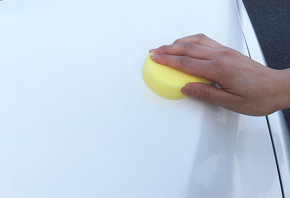 2)用海綿適量沾取本品,再均勻塗開於整個車身