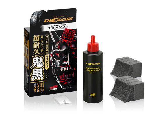Soft99 Digross 超耐久輪胎蠟是一款炭黑x黑色亮澤巴西棕櫚輪胎蠟,讓輪胎長久“妖”、“黑”。超耐用性能可持續約 2 個月或更長時間,別緻優雅的黑色光澤使您的汽車和車輪脫穎而出,防雨,保護輪胎免受紫外線和污垢的侵害,並防止泛白和泛紅。水性型,不使用石油系溶劑,幾乎沒有難聞的氣味。附帶“Pitaspo”,可以精確地塗抹在車輪和車身之間的邊界上,而不會濺到車輪或車身上。