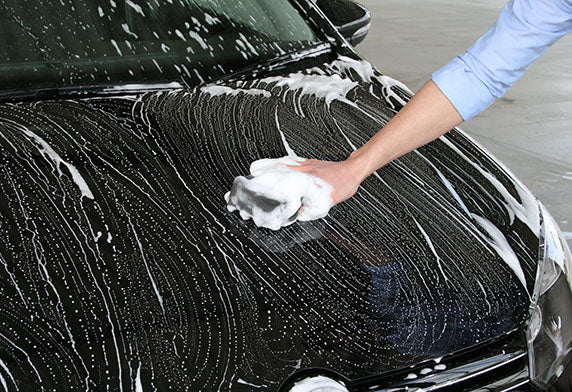 2)將附贈的海綿充分浸泡在稀釋的洗車液,並揉搓出泡沫後直接擦洗車身