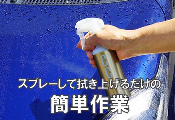 塗層施工:將CC Water Gold 鍍膜劑均勻地噴灑在濕潤的車身上。您可以使用噴霧瓶或噴霧罐來進行噴灑。