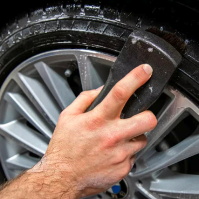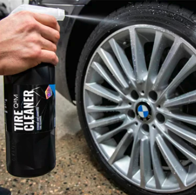 2. 在輪胎表面噴灑 Q²M TireCleaner。
