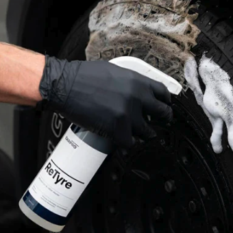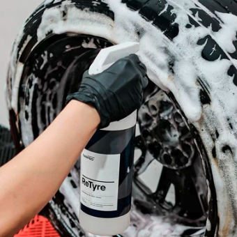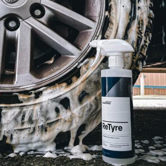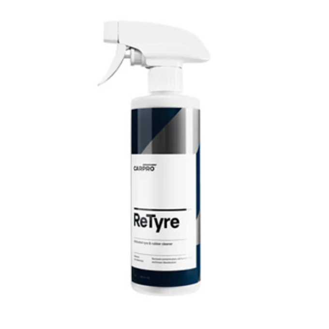 產品描述: 產地: 韓國制造 容量: 500ml CarPro ReTyre是一款專業強效的濃縮清潔劑,能有效去除輪胎表面積聚的輪胎亮澤劑、道路污垢和氧化物。它能恢復輪胎的全新外觀,為後續的輪胎密封劑、塗層或保護劑提供理想的表面。 使用方法: 確保輪胎表面乾淨,先用水徹底沖洗輪胎。 將 CarPro ReTyre均勻噴灑在輪胎上,讓其起泡並停留約30秒鐘。 使用中硬度的刷子將產品均勻刷在輪胎表面上。 徹底沖洗輪胎和刷子,直到輪胎表面的泡沫變為白色。 等待輪胎完全乾燥後,可以使用 CARPRO Perl、CARPRO Darkside 或 CQUARTZ BlackOut 進一步保護輪胎。