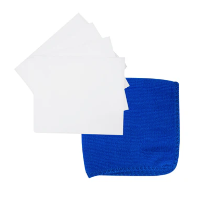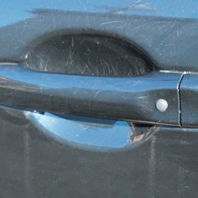 3. 刮痕消失後,取少量恢復光澤保護蠟**藍色包裝**於藍色微纖維布上,均勻塗抹在修復區域。最後,用乾燥的面部微纖維布擦拭,以達到最佳效果。