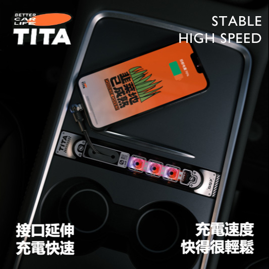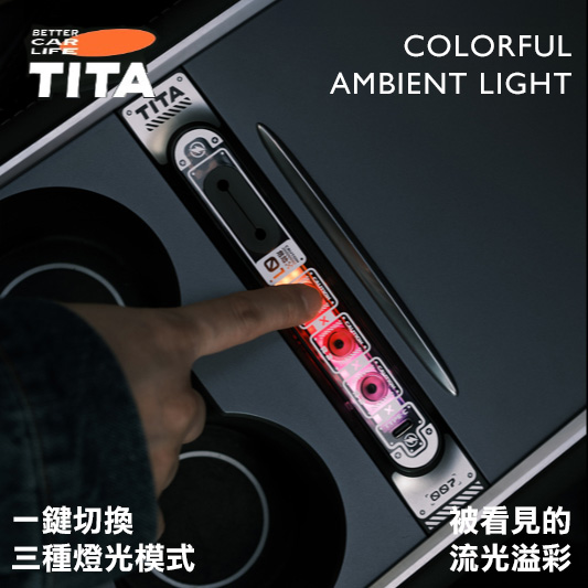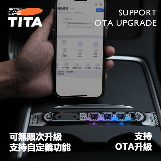 TITA專為特斯拉Model 3/Y中控台設計的多功能拓展塢, 不僅將中控儲物盒內的Type-C接口延伸出來,還有三顆可自定義 單擊/雙擊/長按的實體按鍵,為你的拓展塢不只增加接口,還實現一鍵啟動的延伸功能,支持OTA升級更新功能,搭配炫彩的氛圍燈,彰顯你的與眾不同。