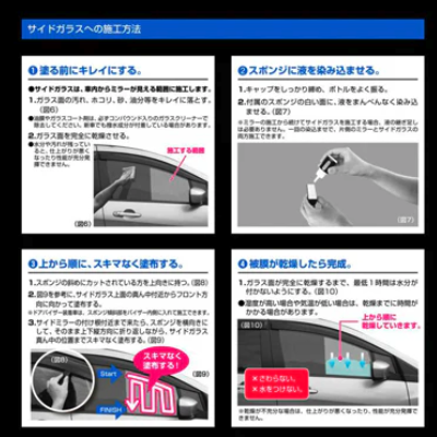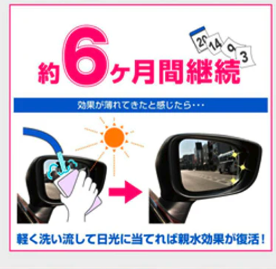 產品描述: 產地: 日本製造 容量: 20ml Carmate汽車側鏡親水鍍膜是一款專為車用後視鏡設計的超親水塗層產品。它能讓後視鏡表面形成親水性, 大幅提升清晰效果, 在下雨或洗車時, 不會形成水滴亦不留痕跡, 大大提升行車視野和安全性。這款塗層採用獨特的超親水技術, 不僅持久耐用, 而且更易於清潔保養。無論是在城市還是高速公路上行駛,都能給您卓越的視野體驗。 使用說明: 1.將車輛停放在陰涼處, 確保後視鏡表面完全清潔及乾燥。 2.摇匀產品瓶身後, 取適量親水鍍膜劑滴在附送海棉上。 3.然後均勻塗抹在後視鏡表面。 4.塗抹後靜置60分鐘左右, 待塗層完全固化。 5.如有殘留可用柔軟的布料輕輕擦拭。 6. 塗層持續時間約為6個月, 需定期重新塗抹維護。
