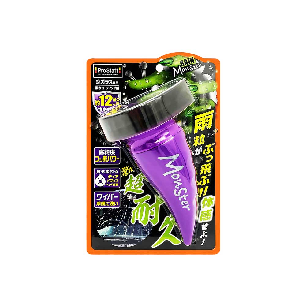 Prostaff怪物級別超耐久防水塗層專為車窗玻璃設計的撥水塗層, 能有效維持約12個月的超強撥水效果。採用高純度氟矽樹脂,形成堅固耐用的撥水膜層。