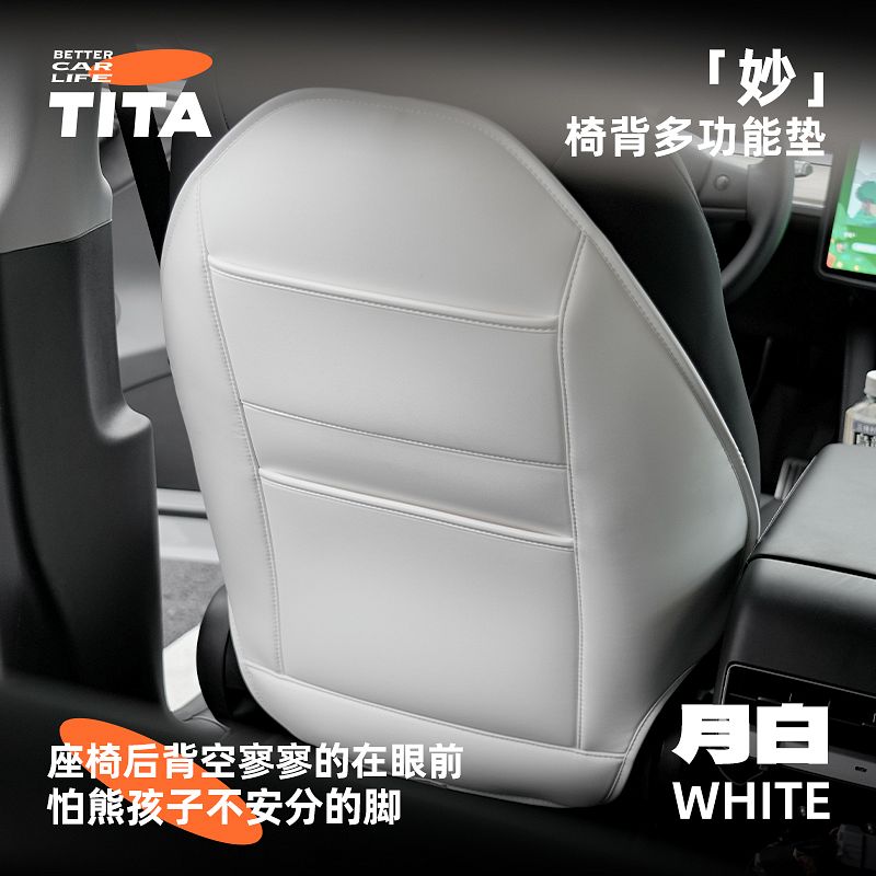 Model 3/Y「妙」座椅防踢收納墊 | TITA -新的價值總是在期待被開發 防踢和收納的功能合體 座椅後背空寥寥的在眼前怕熊孩子不安分的腳 防霉透氣 不畏曝曬 細膩親膚易清洗皮面 透氣高回彈 無畏刮碰 無畏踩踢 保護原車座椅,隨擦隨淨。防髒防刮,實時保護。 原廠訂製邊緣與原車造型緊密貼合 一层两层一大一小后置收纳袋 適用: Model 3 / Y 材質: PVC 皮 + 高回彈海綿