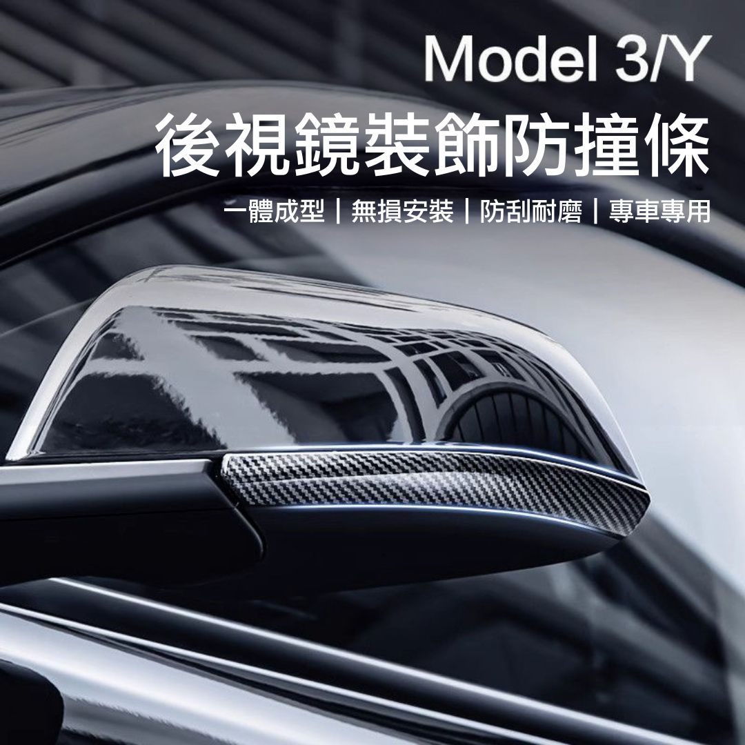 Model 3 後視鏡裝飾防撞條 (亮黑/碳纖紋)