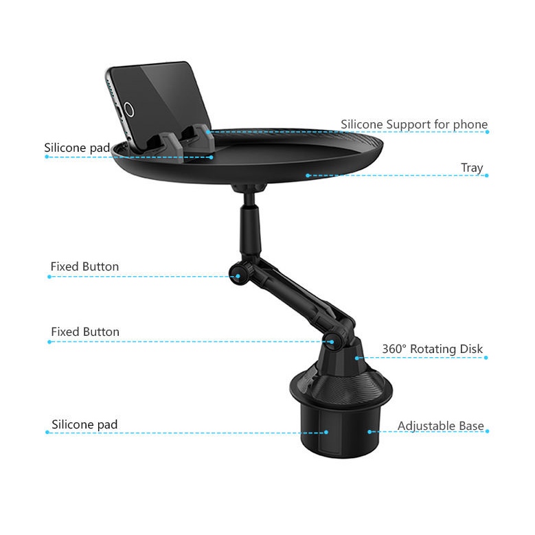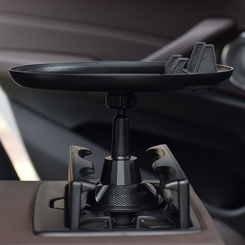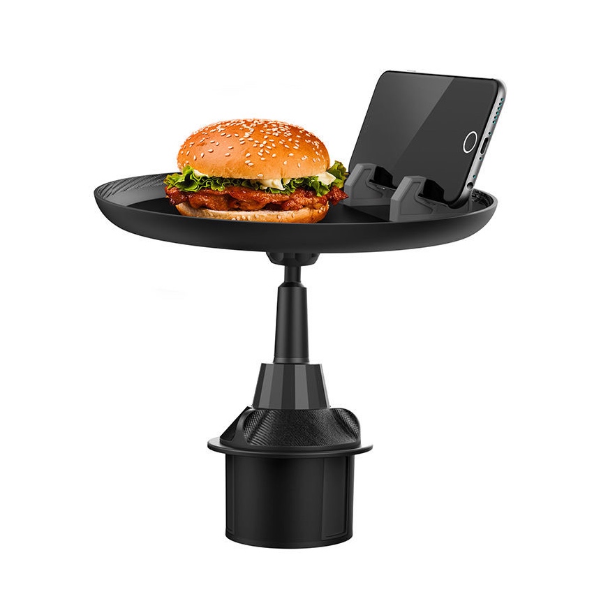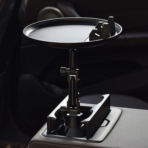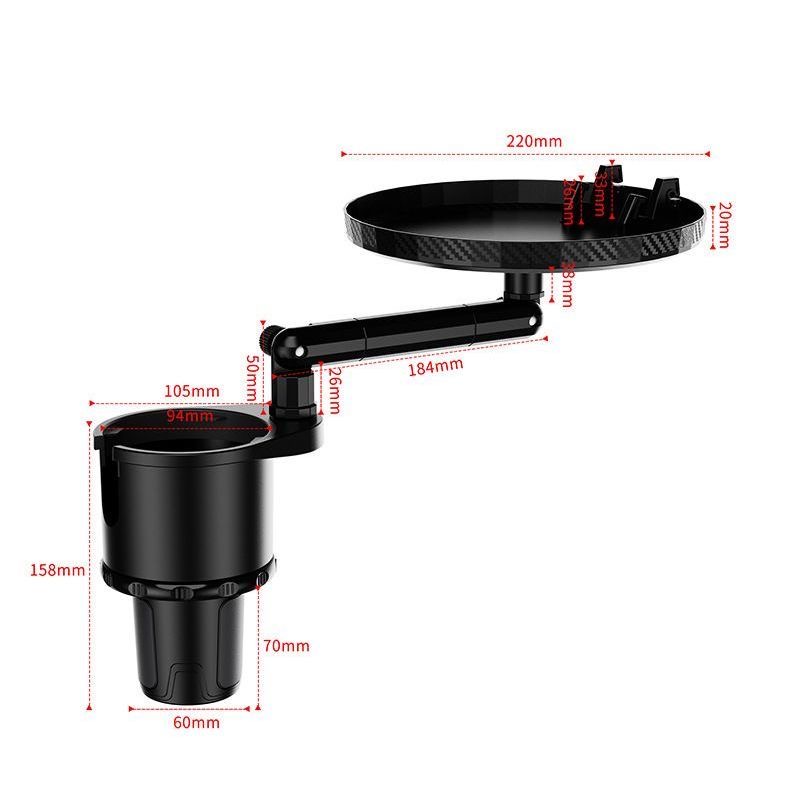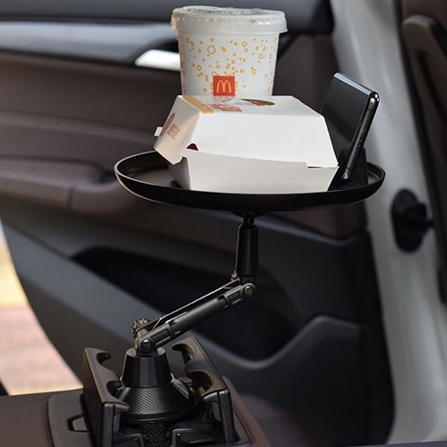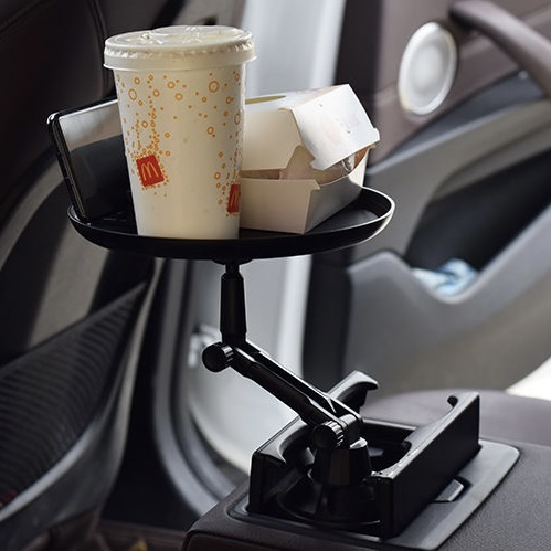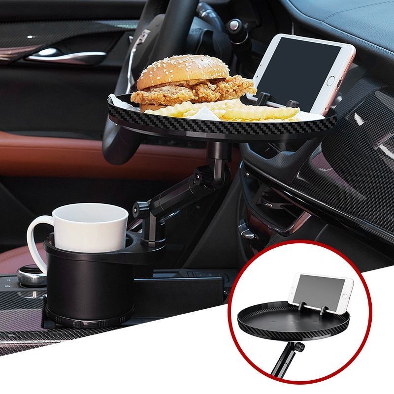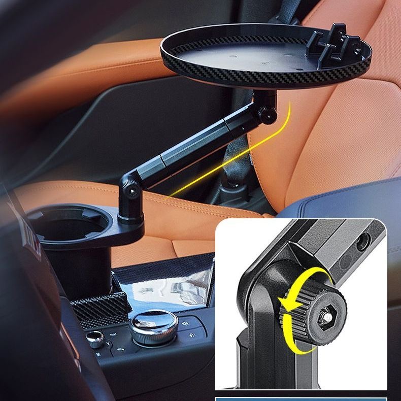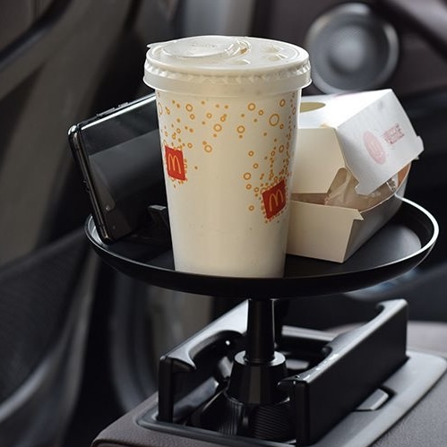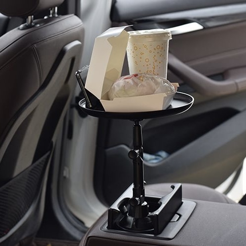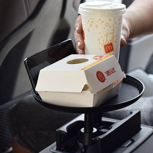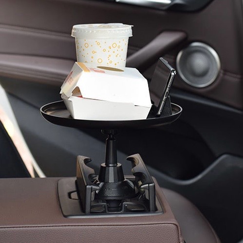 車載多功能托盤架 汽車小餐桌 托盤水杯位飲料桌 食品置物可折疊支架 顏色: 尺寸:水杯直徑最小6cm, 最大扭至9.4cm 材質:ABS 規格:180度旋轉餐桌盤 適用:所有車型 安裝位置:主副駕座