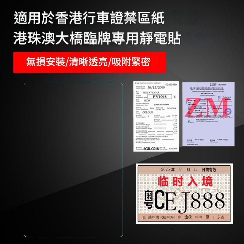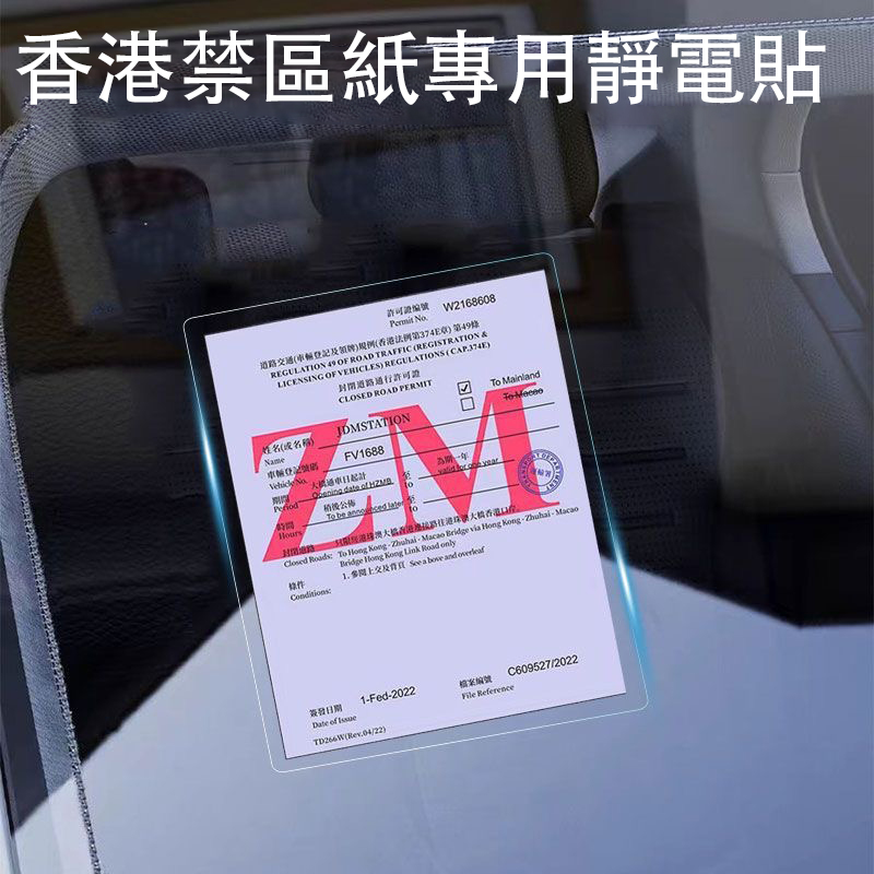 無字靜電貼x2 (裝通關用+裝行車紙) 無字靜電貼 (裝通關用) 高16x13.5cm 無字靜電貼 (裝行車紙) 高16x11.5cm 無字靜電貼 (禁區S/禁區ZM/禁區L/禁區M/) 高15x12cm 無字靜電貼 (HK牌) 高15x10cm