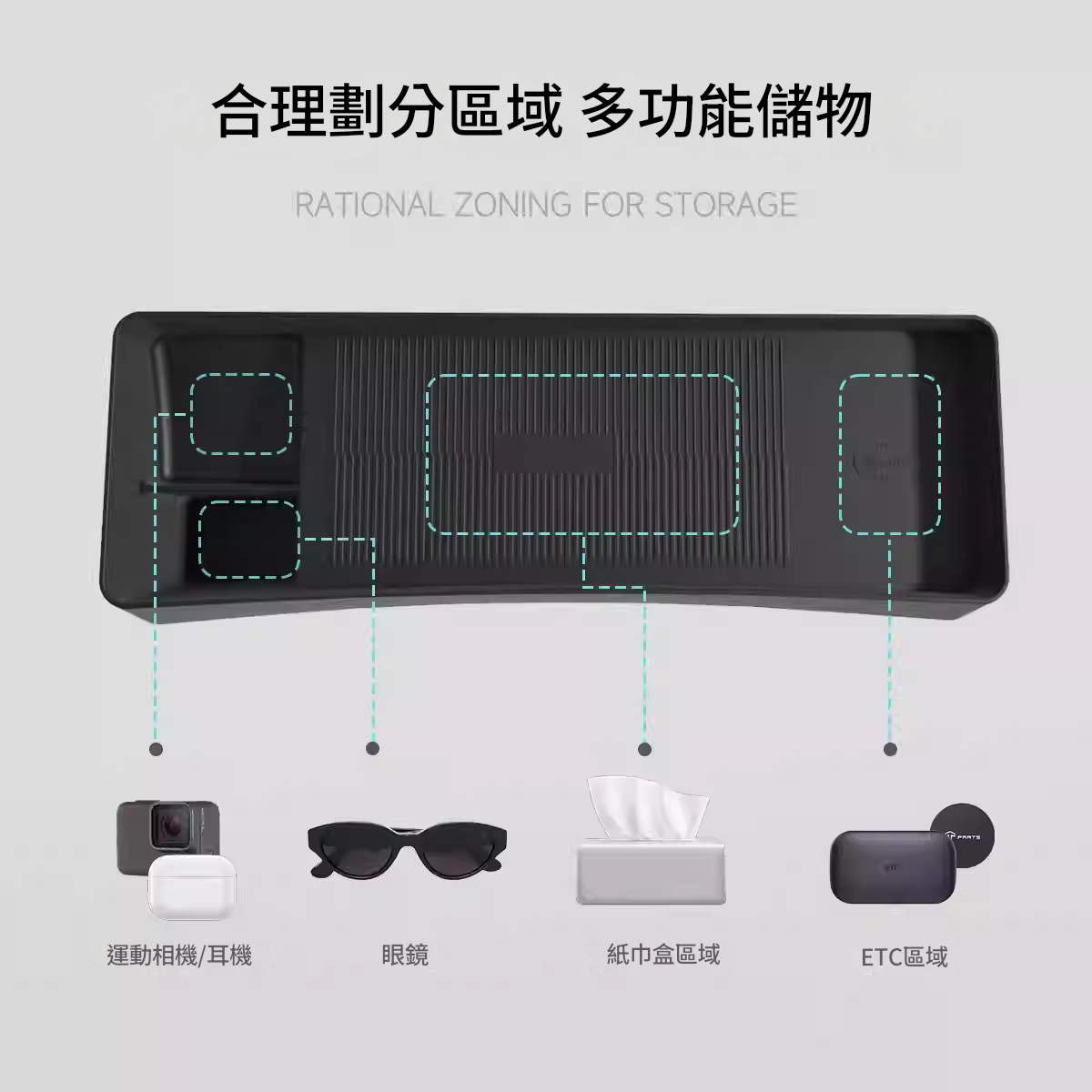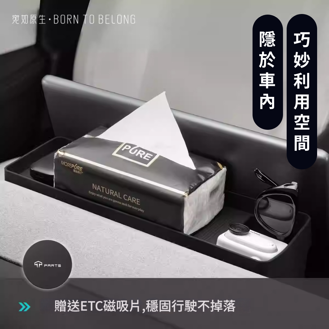 TPARTS 螢幕後矽膠收納托盤 矽膠材質無異響 隱於車內 位置巧妙,隨用隨取 巧妙利用屏幕後方空間隱藏式收納主副駕拿取方便 合理劃分區域 多功能儲物 告別凌亂 更合理的分隔設計,單獨ETC放置區收納紙巾、眼鏡及小物件更方便 隱藏式磁吸卡位 附送磁吸片,穩固行駛不掉落 原車開模 緊密貼合,不傷車身 環保矽膠物料 無異味,耐高溫不變形 防灰塵容易打理 便捷安裝 嵌入式設計,一放一卡即可 一體成形 加倍物料,持久耐用