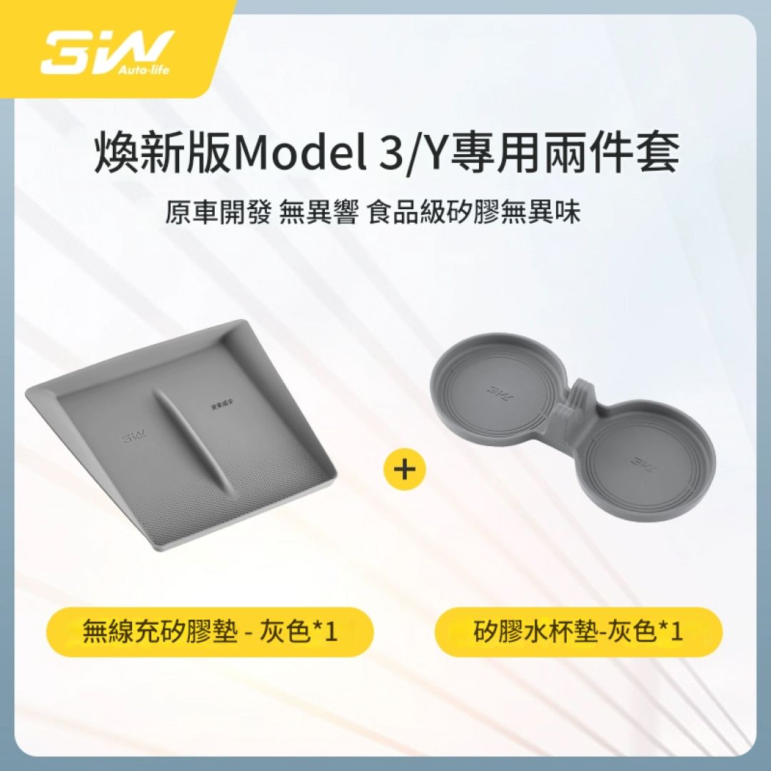 新版Model 3/Y專用水杯兩件套 (三色 - 灰/黑/白)