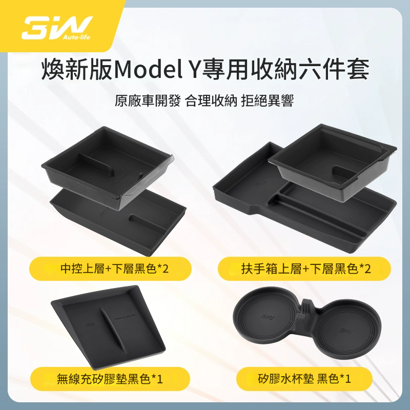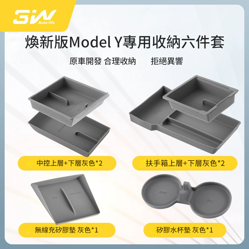 新版Model Y專用收納六件套 (兩色 - 灰/黑)