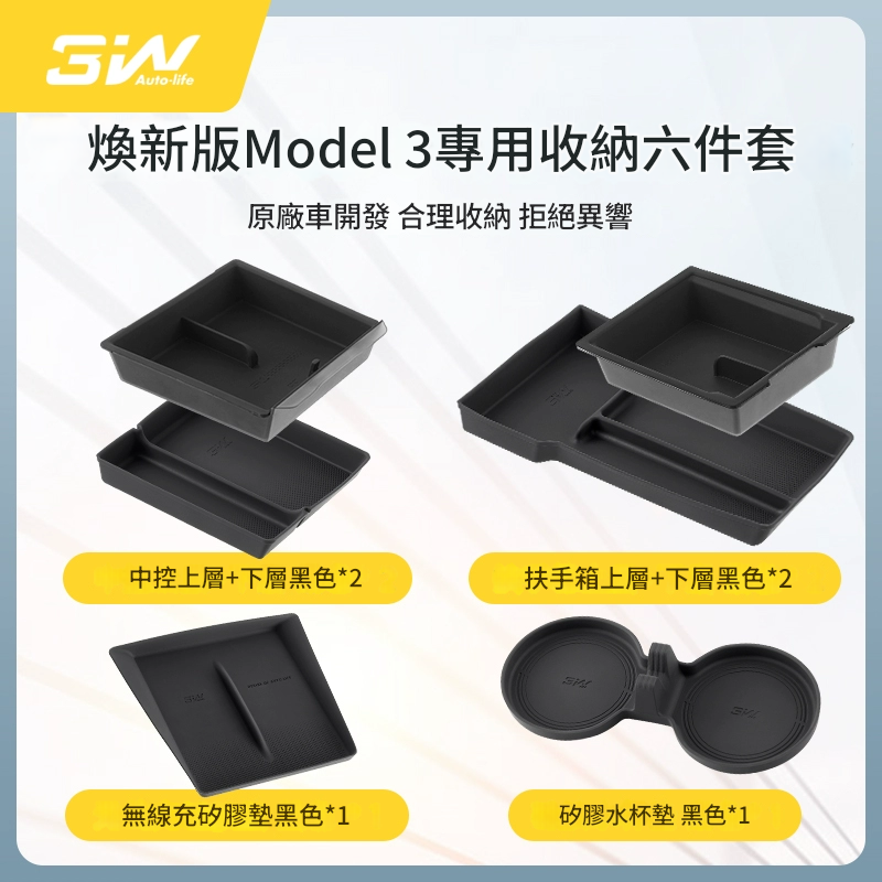 新版Model 3專用收納六件套 (兩色 - 灰/黑)