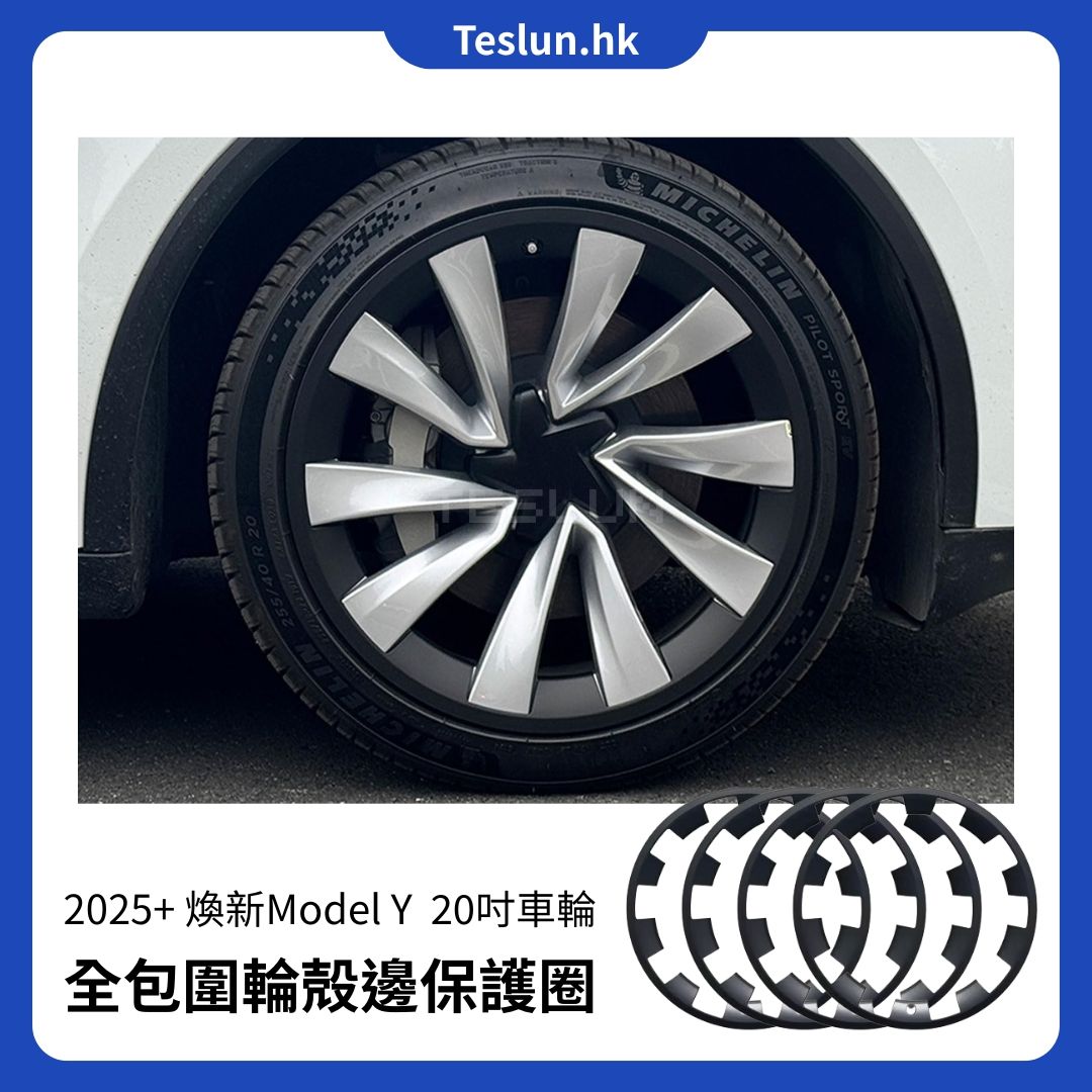 25+煥新Model Y 20”全包圍車輪蓋邊保護罩款4件套 (亮白/亮紅/槍灰/啞黑)