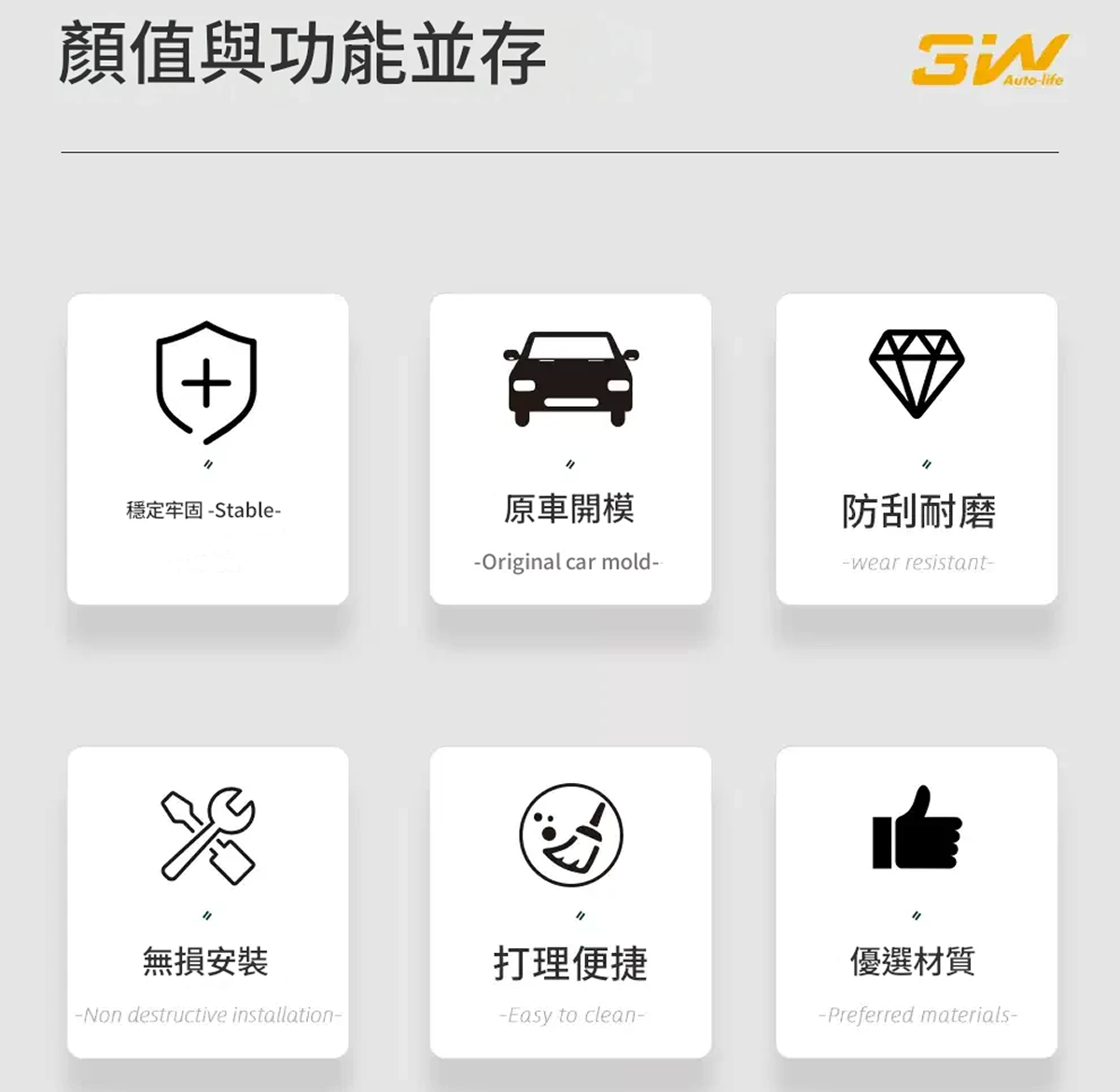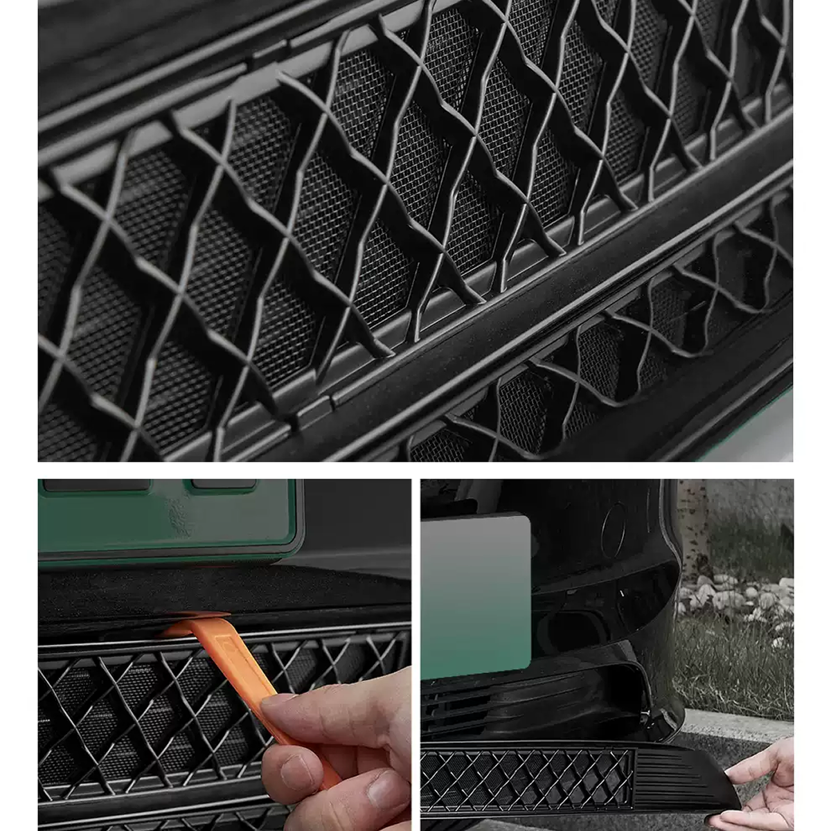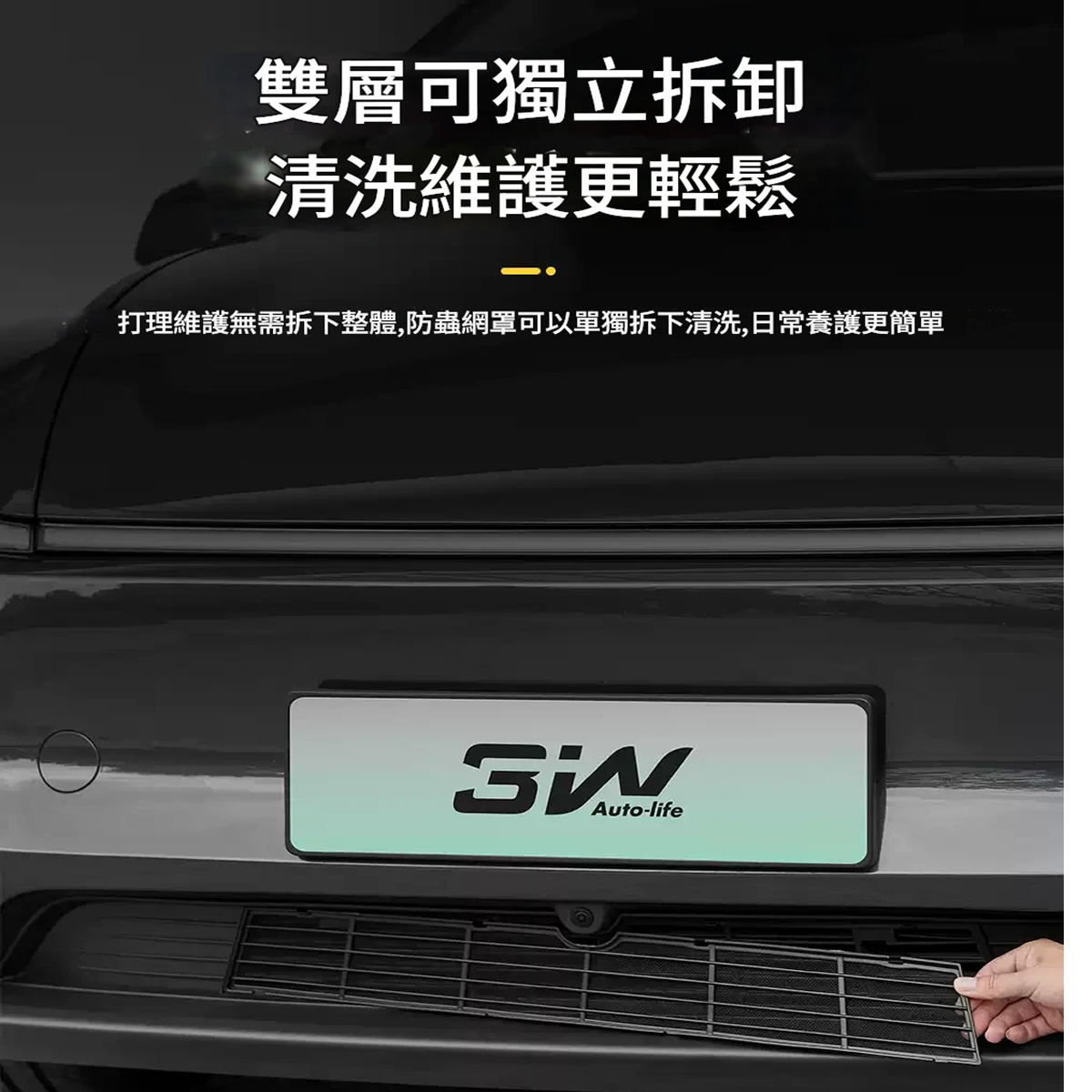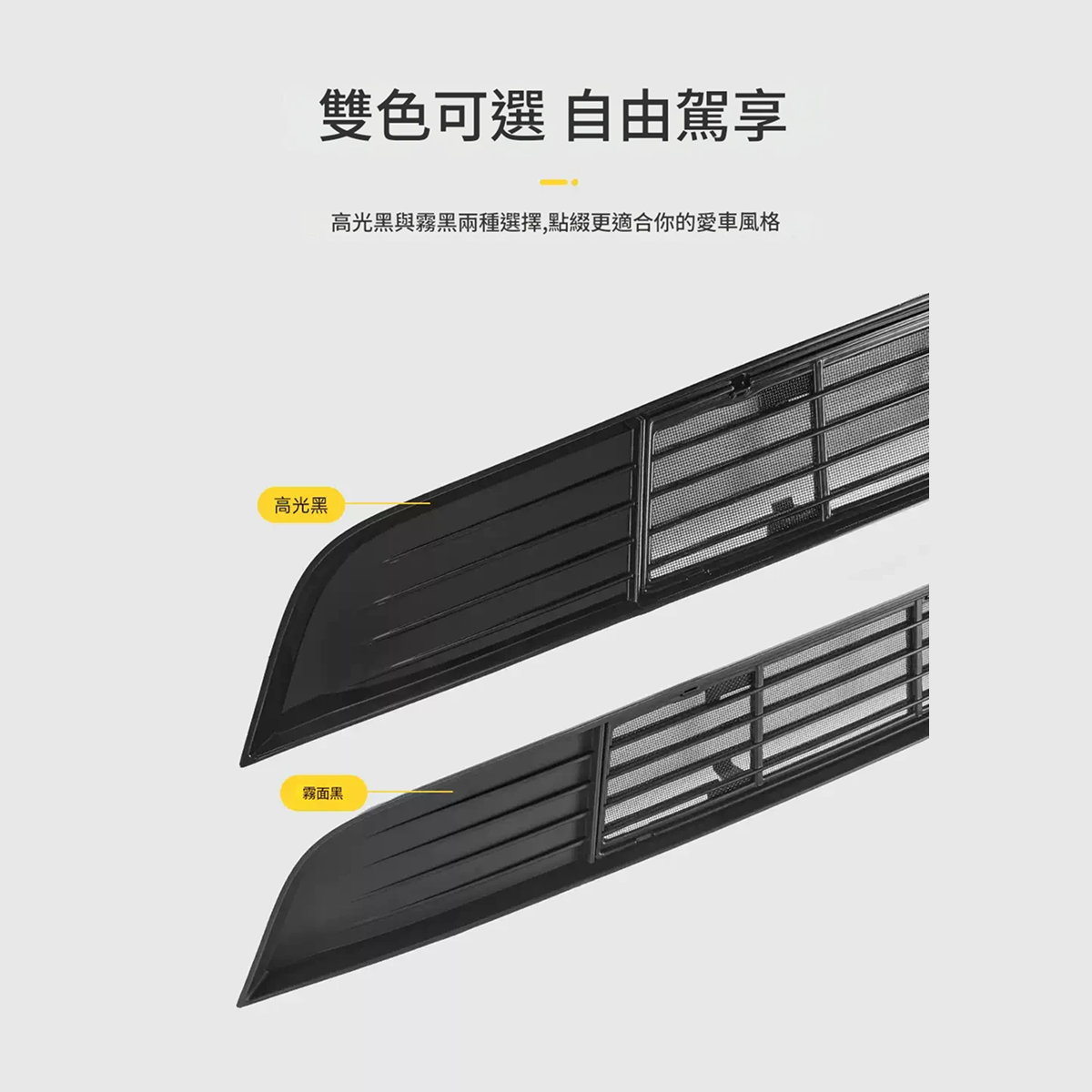 ABS+304不鏽鋼網 輕量化更牢固 ABS格柵搭配細密不銹鋼防蟲網, 帶來更加的抗衝擊性和耐劃性,行車更安全 雙層可獨立拆卸清洗維護更輕鬆 打理維護無需拆下整體,防蟲網罩可以單獨拆下清洗,日常養護更簡單 合理加裝差距如此 質感新升級,與原廠車融為一體 雙色可選 自由駕享 亮黑與啞黑兩種選擇,點綴更適合你的愛車風格