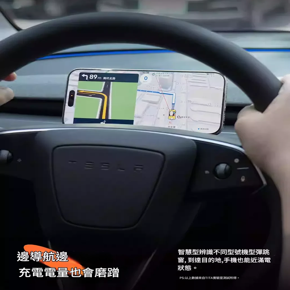 給特斯拉加一塊螢幕 - 更適合駕駛視線的位置,無論導航或充電,都可隨手拿取手機。