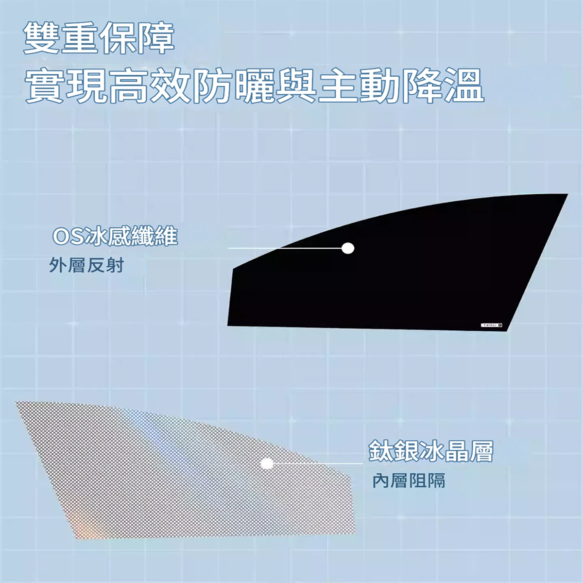 • 雙層加厚遮光布 + 強力遮陽:厚實布料有效遮蔽陽光與紫外線,車內溫度更穩定,避免陽光直射導致高溫、不適與內裝老化。