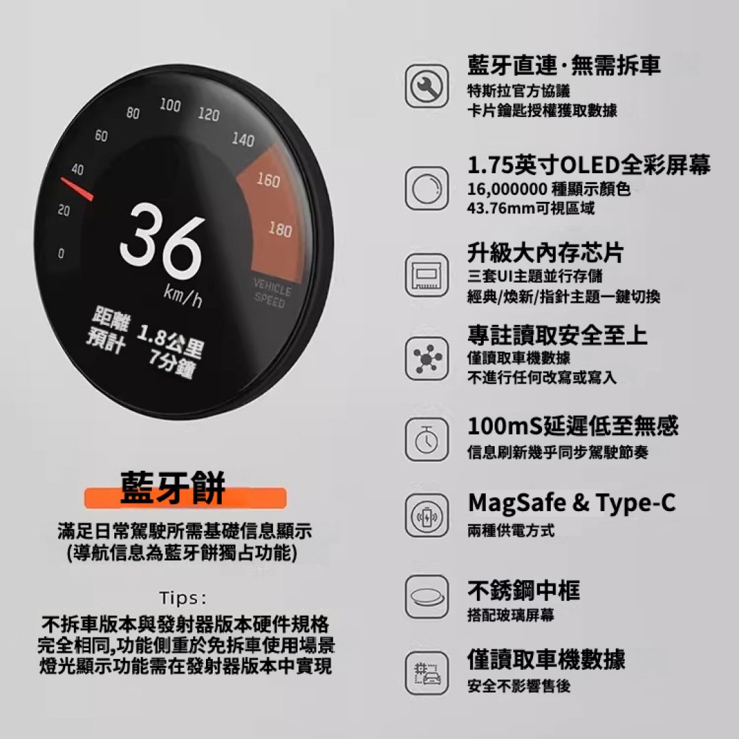 產品規格:餅 Ultra 磁吸車用碼表;OLED 顯示螢幕1.75 in,6mm 超輕薄機身