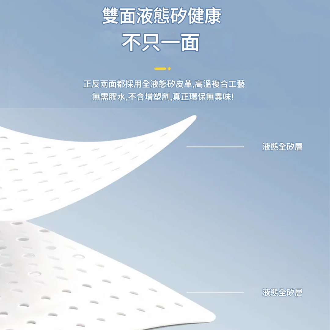 正反兩面都採用全液態矽皮革,高溫複合製程無需膠水,不含增塑劑,真正環保無異味!