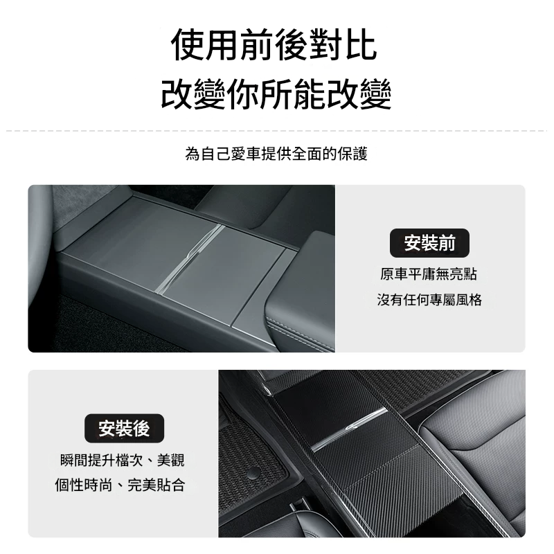 【易於安裝】碳纖維中央控制台包裝套件的背面有汽車專用雙面膠帶,以確保長期使用後不會脫落和變形。中央控制台保護包裝增加了時尚的個性,讓您的特斯拉看起來更專業、高檔和豪華。