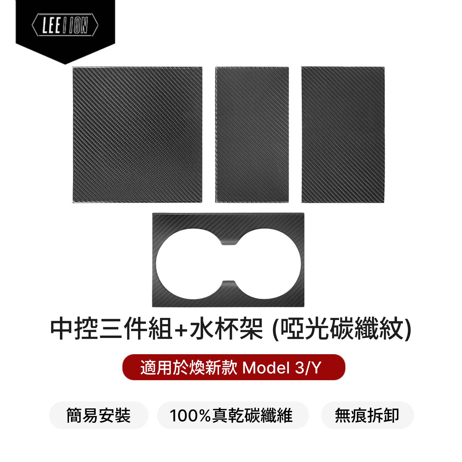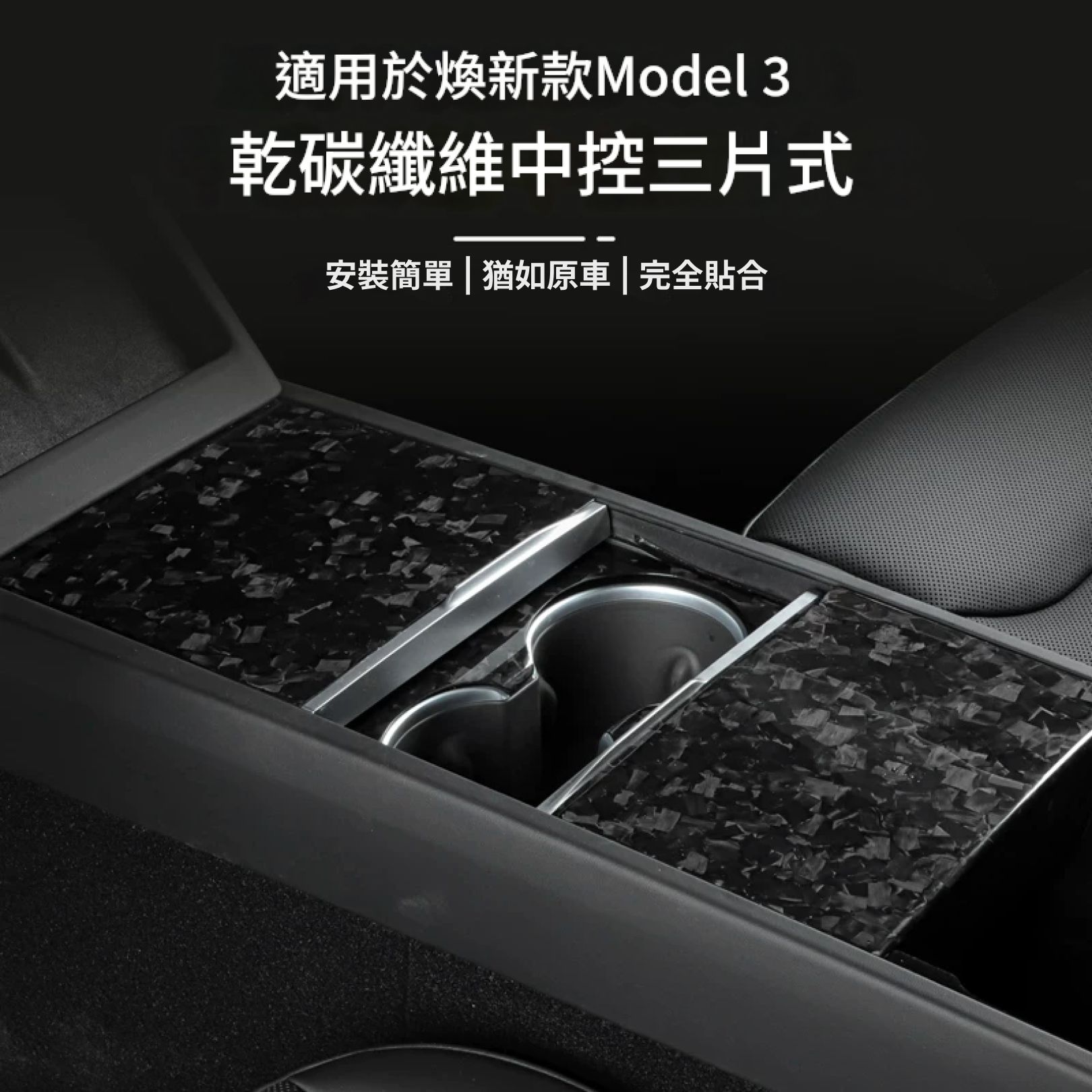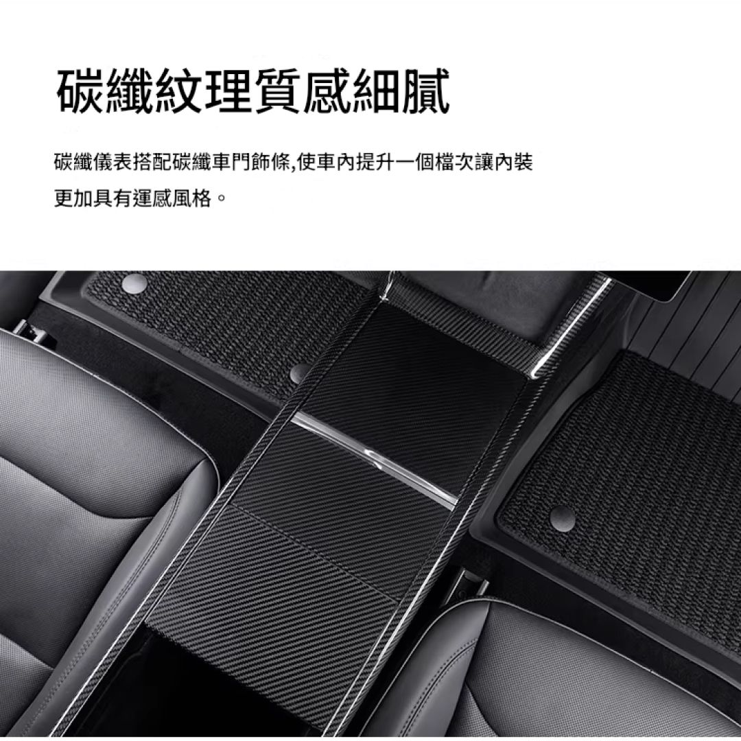 煥新款Model 3/Y 中控三件組+水杯架 碳纖維保護貼