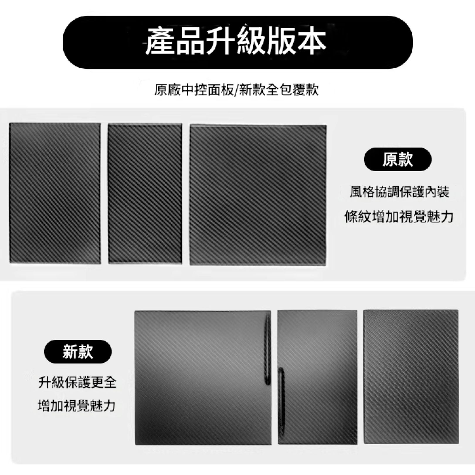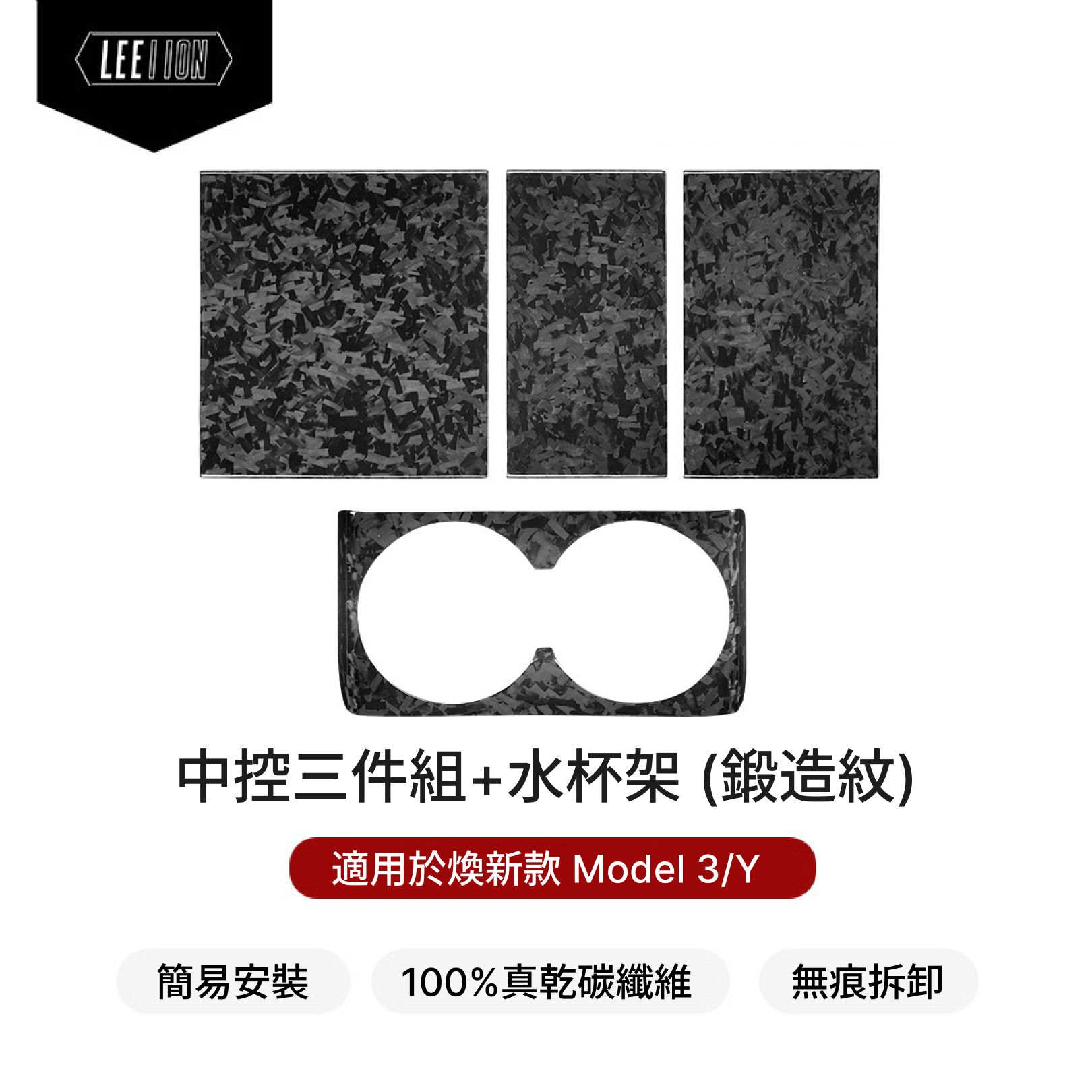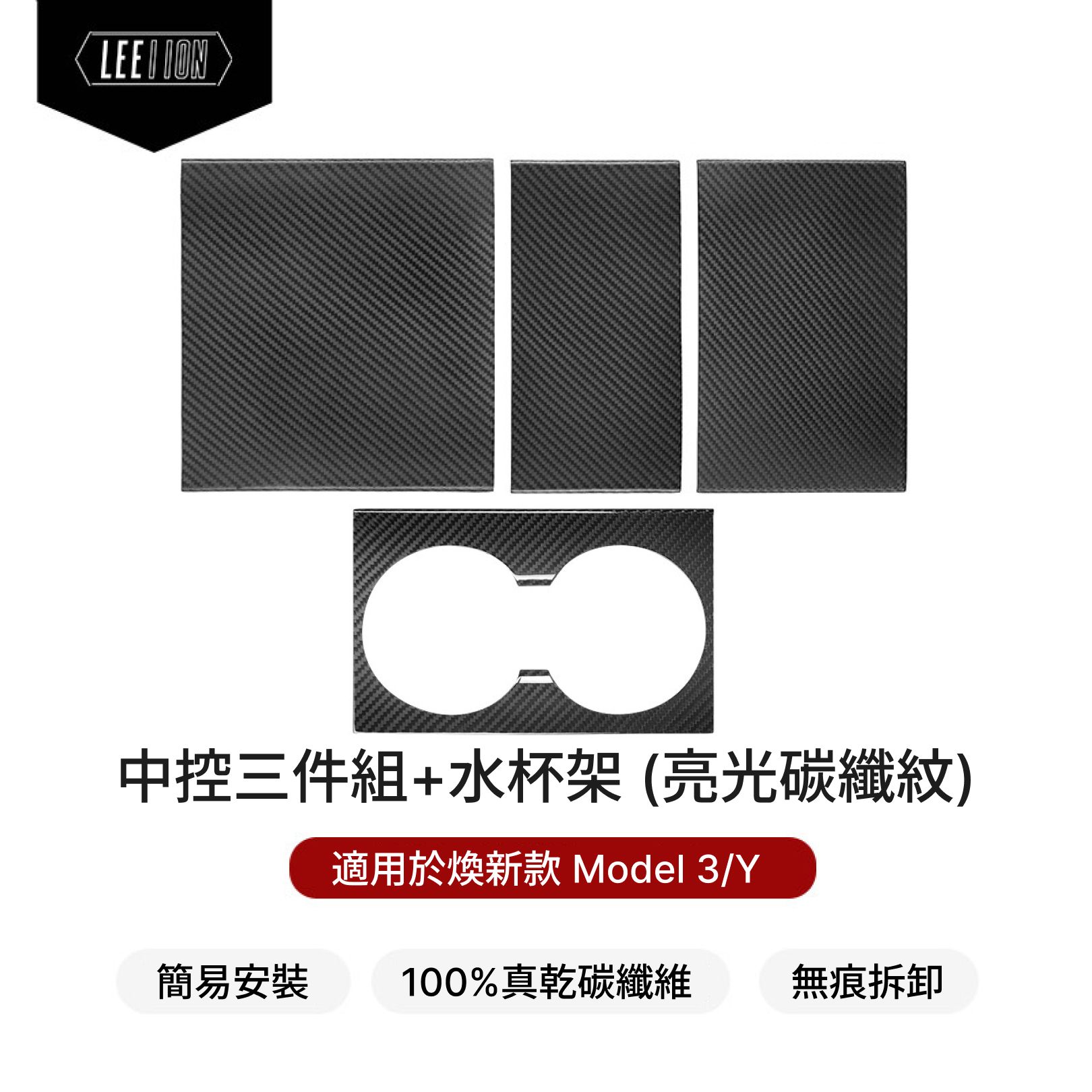 煥新款Model 3/Y 中控三件組+水杯架 碳纖維保護貼