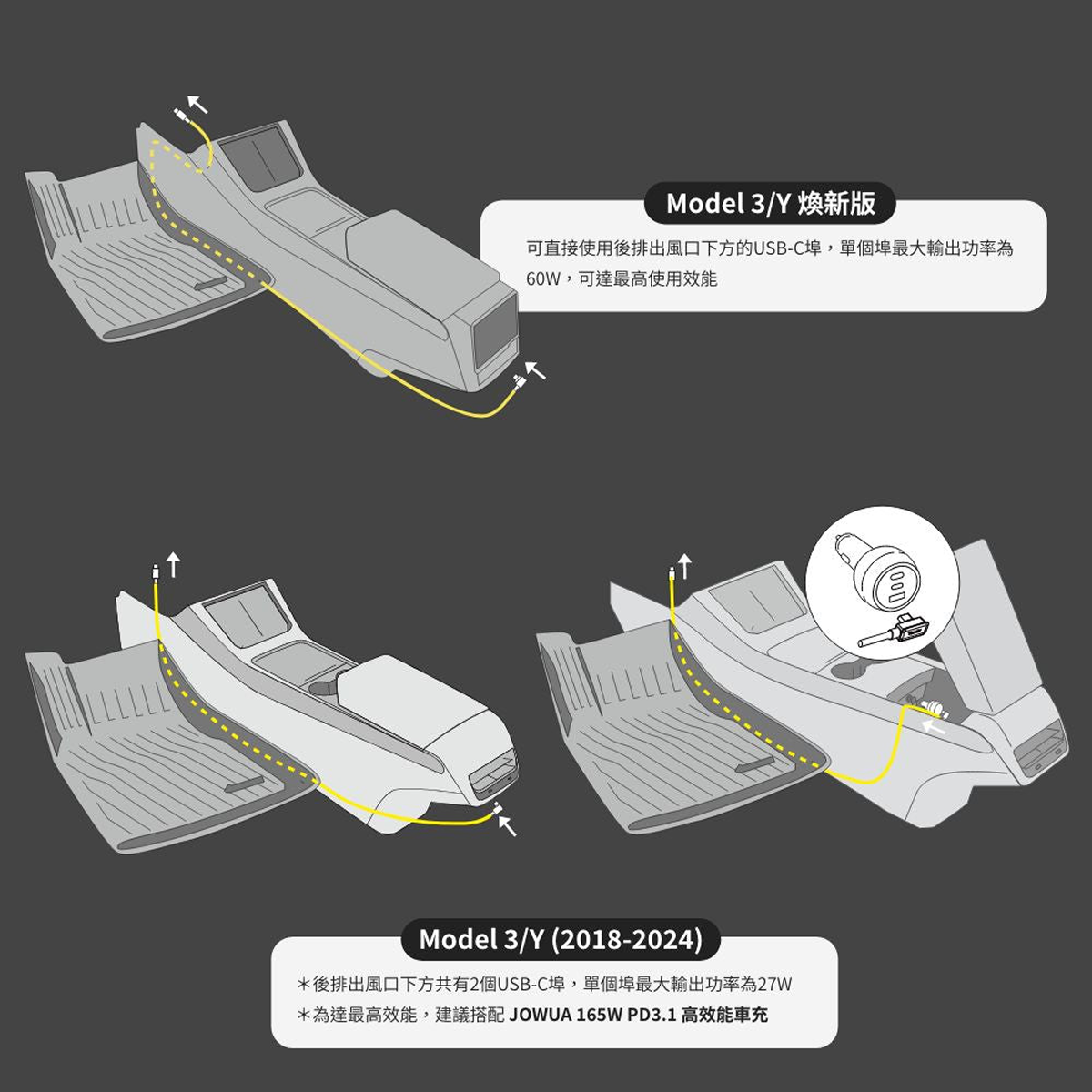 *無線充電版本僅附 USB-C to USB-C 充電線,若後排出風口為 USB-A 端口,需另外加購轉接頭。