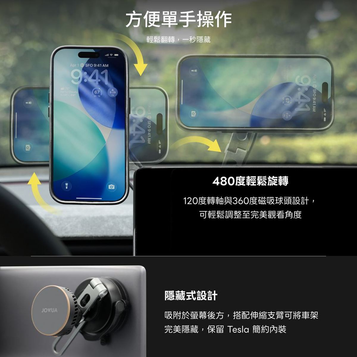 伸縮設計可隱藏車架,保留 Tesla 簡約內裝。