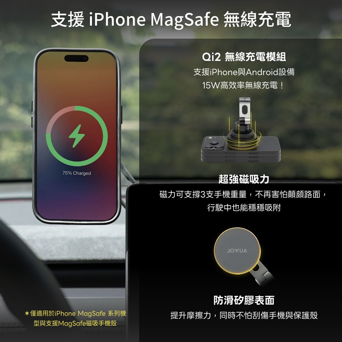 適用於 iPhone MagSafe 磁吸系列機型與 MagSafe 磁吸手機殼,讓無線充電更快捷。