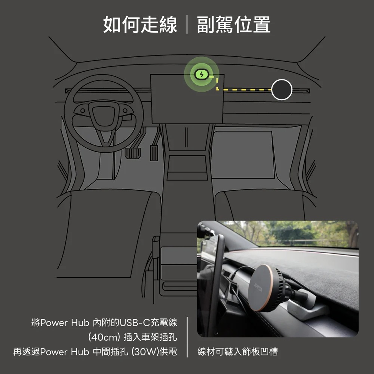 為達Qi2 製冷無線充電車架之最佳充電效能,需請使用30W (15V/2A) 功率之充電配件