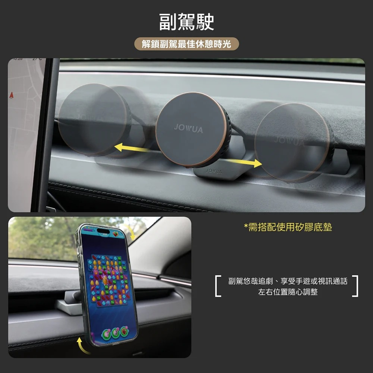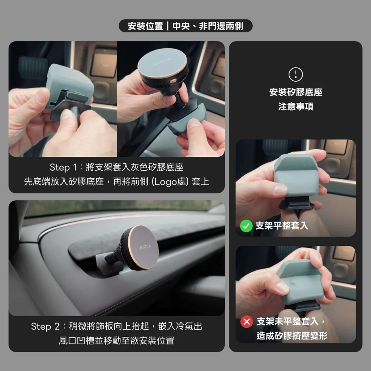 靠近車門兩側:無需搭配矽膠底座