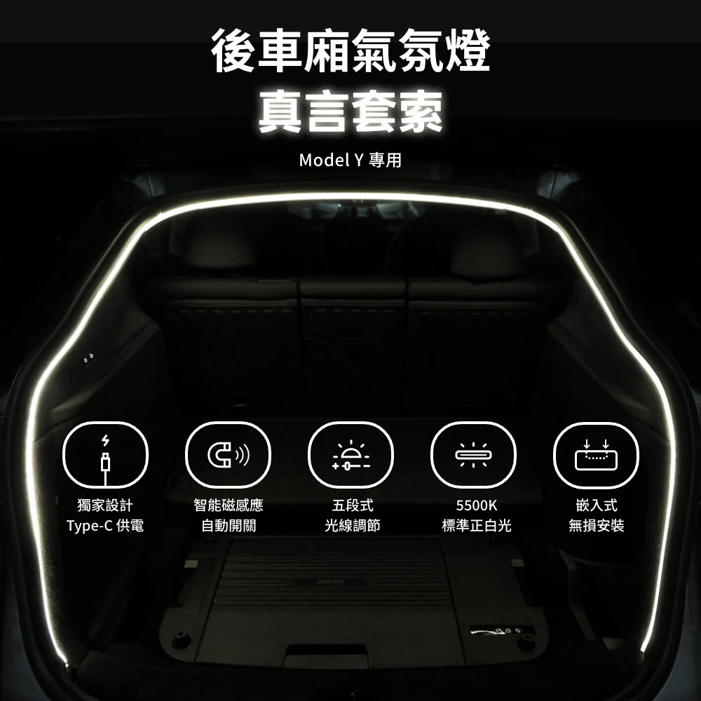 適用於 Tesla Model Y 全系列車款,智能磁感應自動開關,愜意享受最有氣氛的露營夜晚