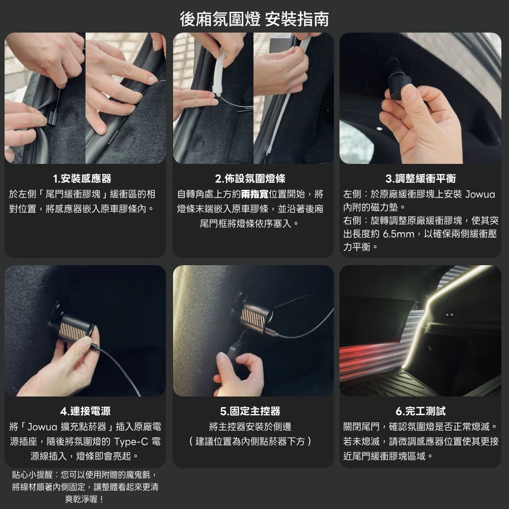 超簡單安裝,纖薄隱藏,完美嵌入後車廂縫隙